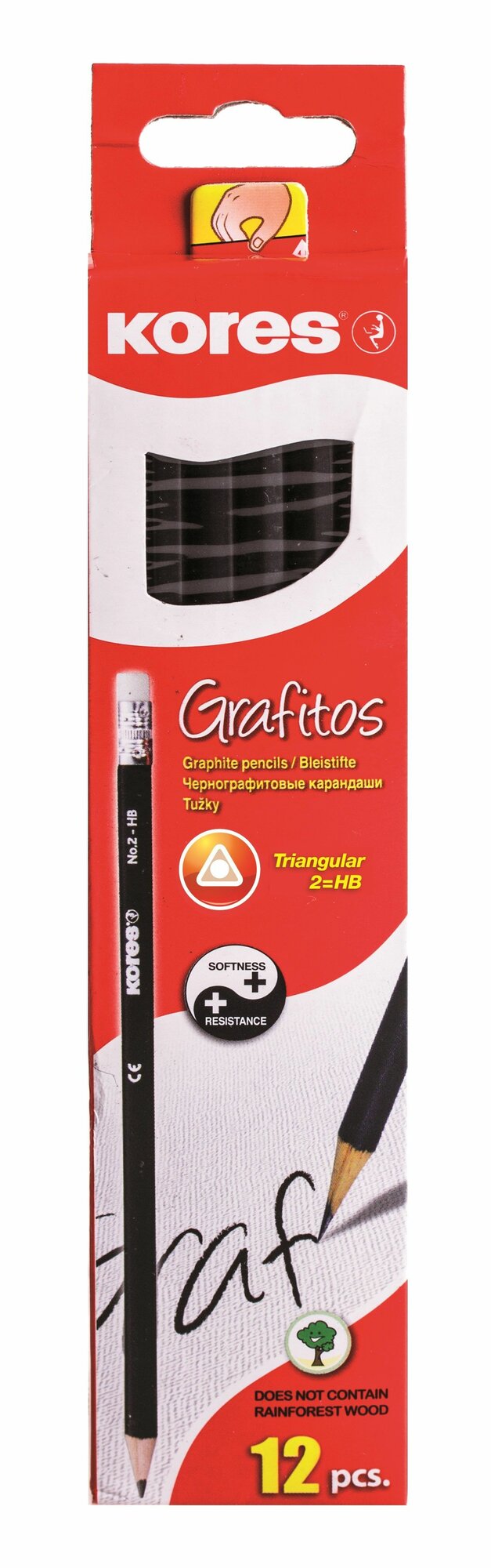 Купить Карандаши простые с ластиком Kores, чернографитные, НВ, набор 12 шт