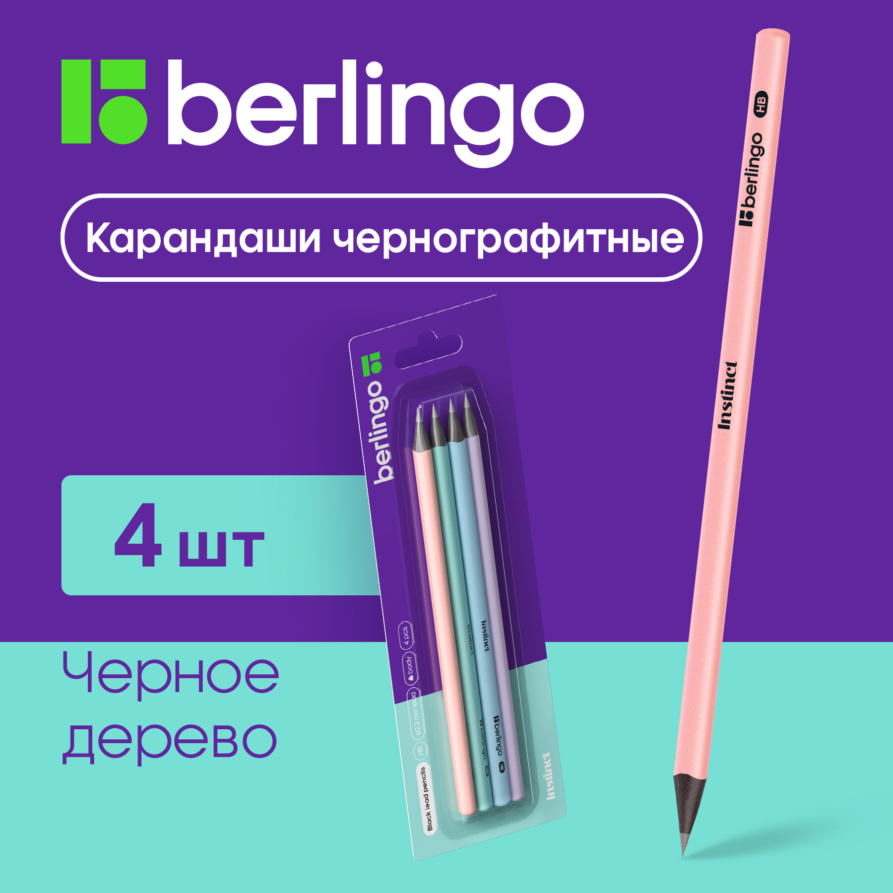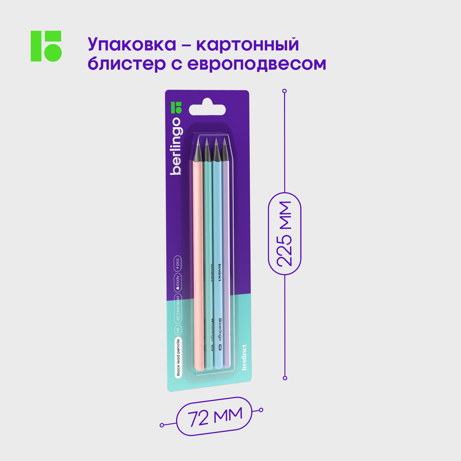 Купить Карандаши для школы простые HB / Набор чернографитных карандашей для офиса и рисования из 4 штук Berlingo "Instinct"