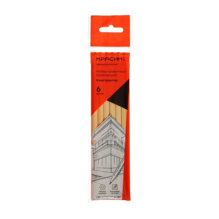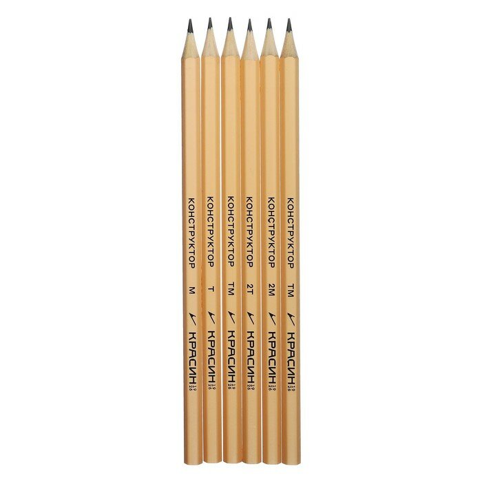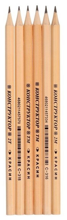 Купить Набор карандашей ч/г Красин "Конструктор" 6шт, 2Т (2Н), Т (Н), ТМ (НВ)-2, М (В), 2М (2В) шестигран, заточен, ПП пакет, европодвес 346232