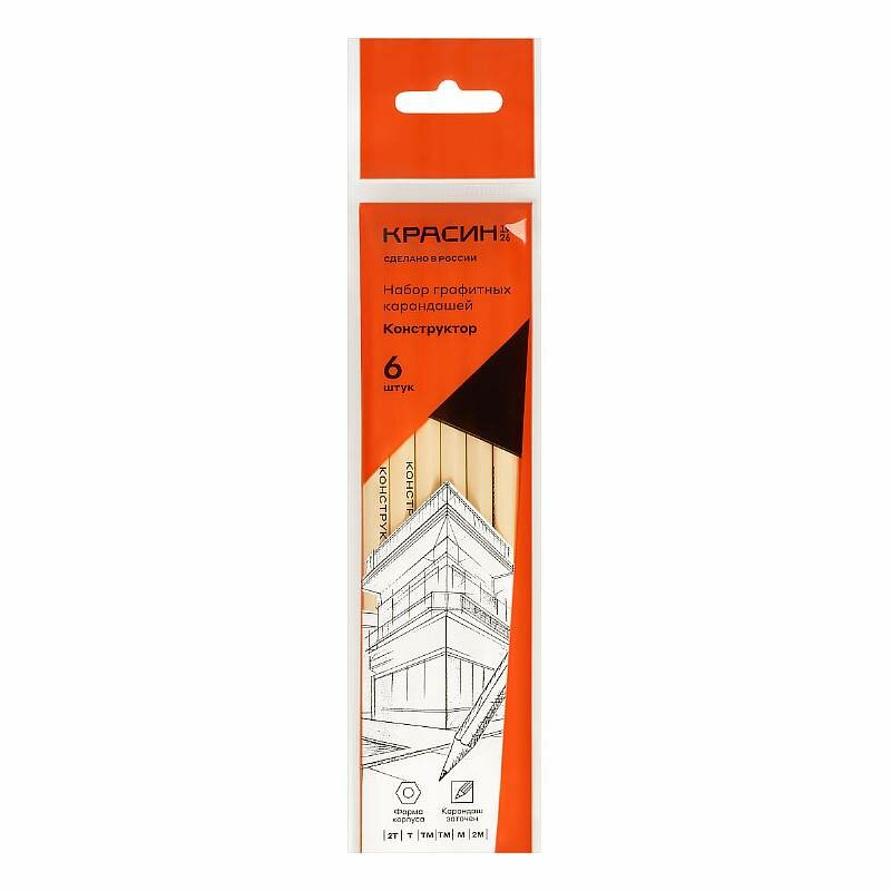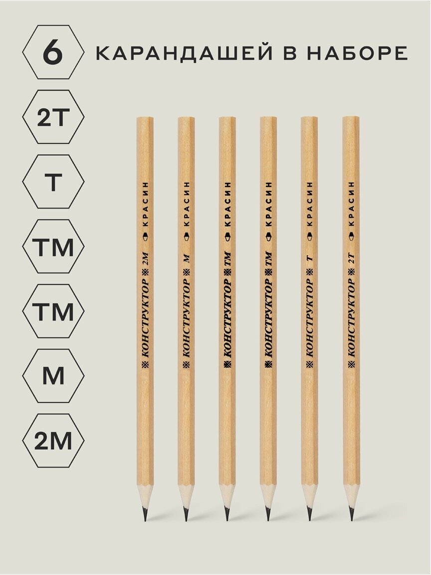 Набор карандашей ч/г Красин "Конструктор" 6шт, 2Т (2Н), Т (Н), ТМ (НВ)-2, М (В), 2М (2В) шестигран, заточен, ПП пакет, европодвес 346232 интересное: