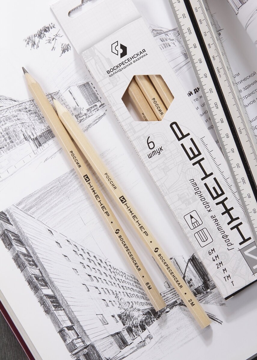 Набор графитных карандашей "ВКФ" "инженер" 6B-1240 заточенный ассорти 6 шт. 6М(6В), 4М(4В), 2М(2В), М(В), ТМ(НВ), Т(Н) интересное: