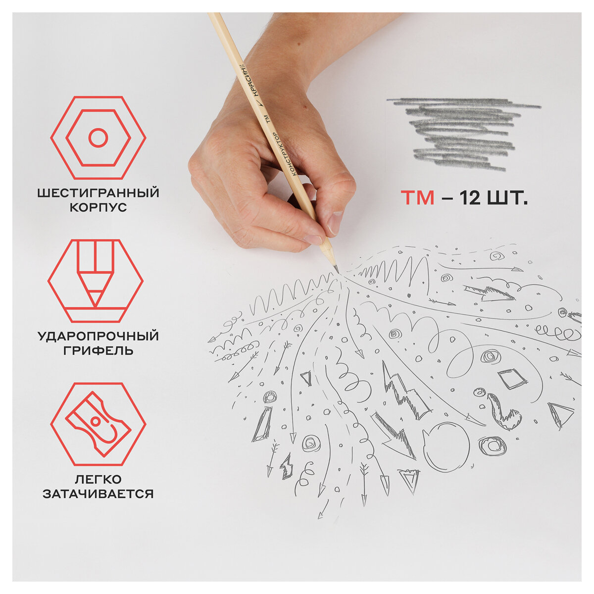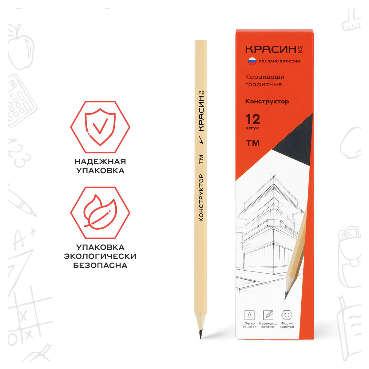 Купить Карандаш простой для школы HB / Набор простых карандашей для рисования и офиса из 12 штук Красин "Конструктор" чернографитные карандаши для скетчинга