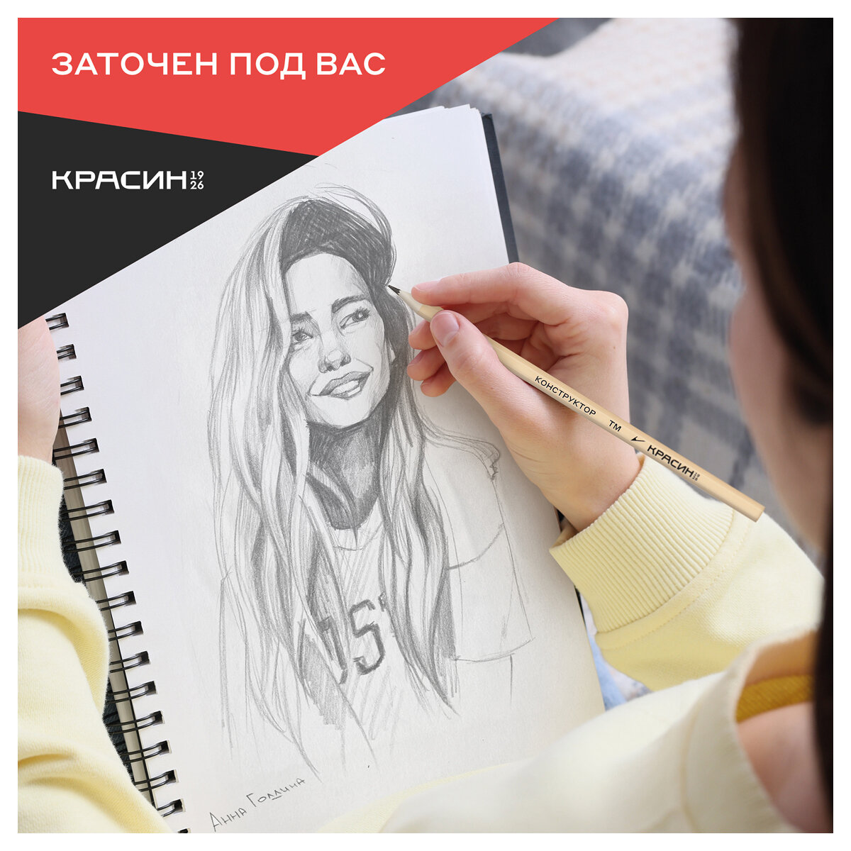 Карандаш простой для школы HB / Набор простых карандашей для рисования и офиса из 12 штук Красин "Конструктор" чернографитные карандаши для скетчинга