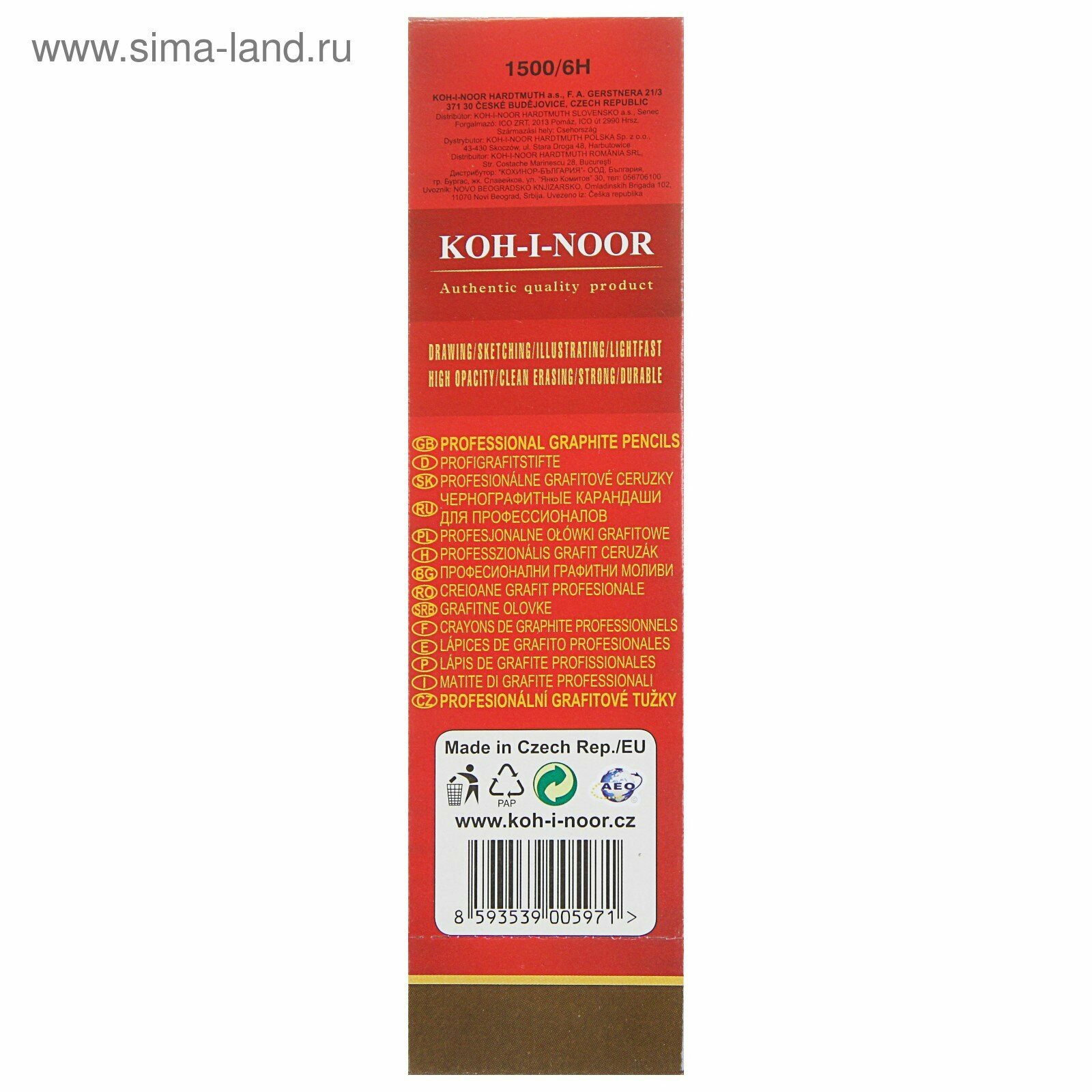 Купить Карандаш KOH-I-NOOR 1500, чернографитный, твердость грифеля 6H