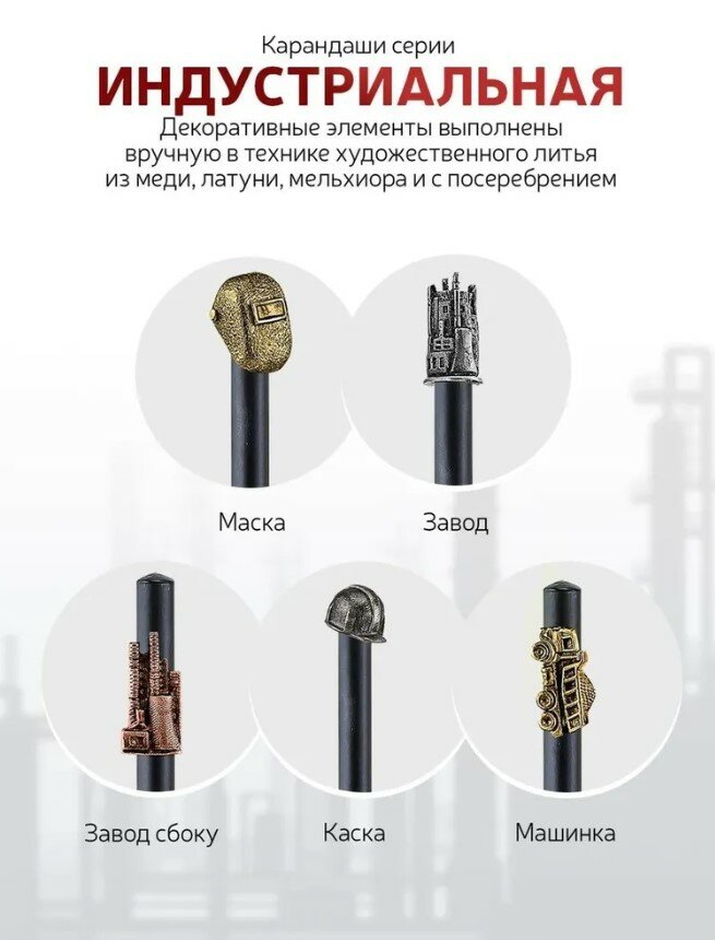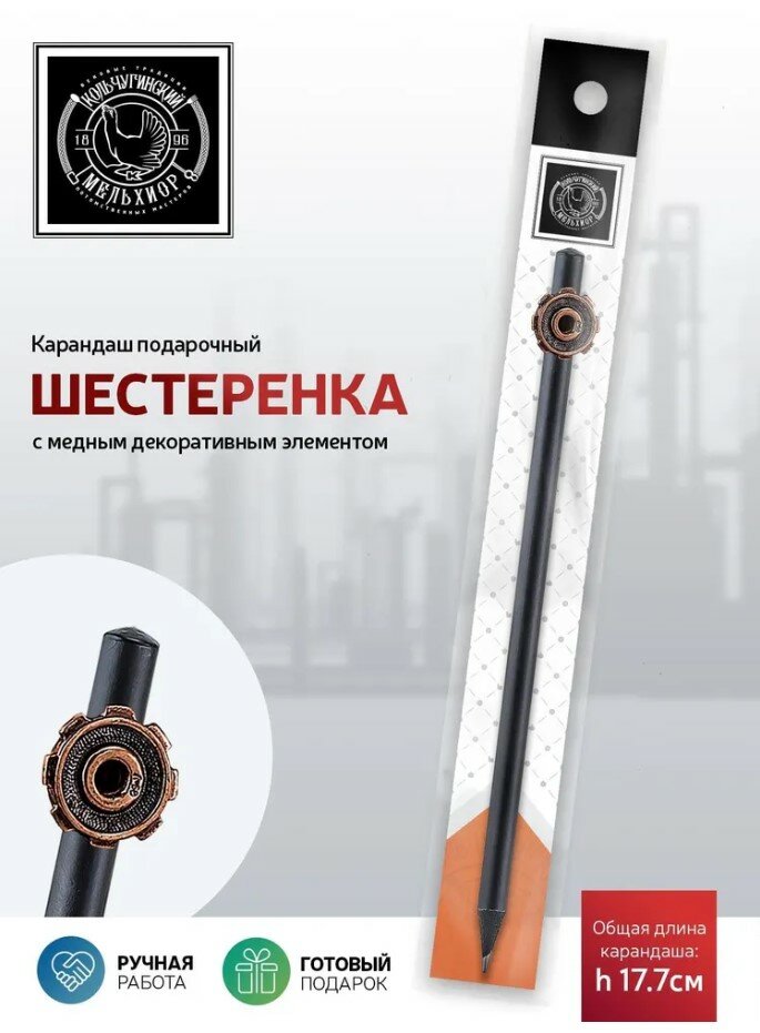 Карандаш чернографитный "Индустриальный Шестеренка" медный с чернением интересное: