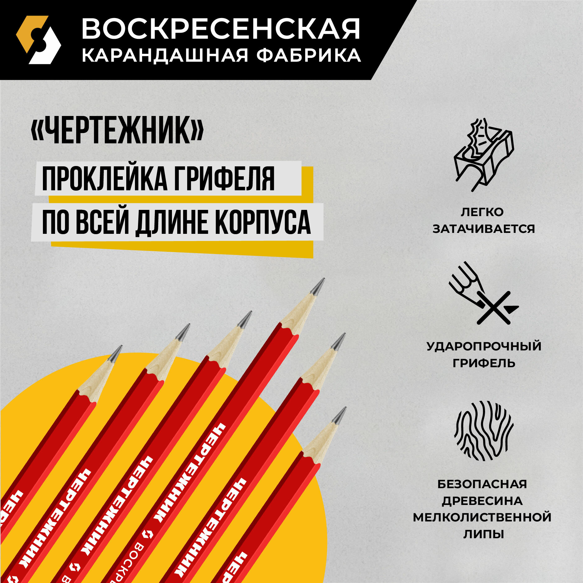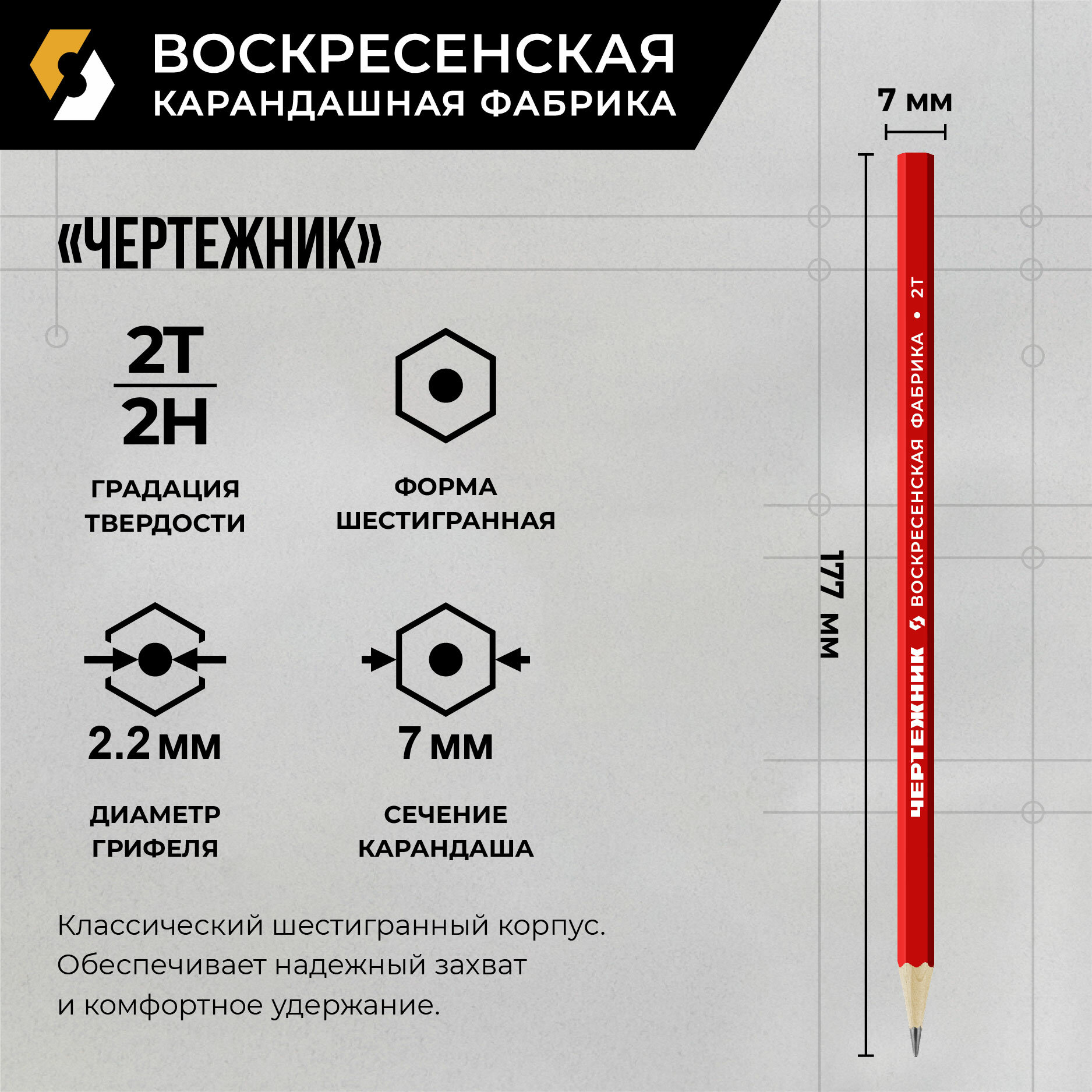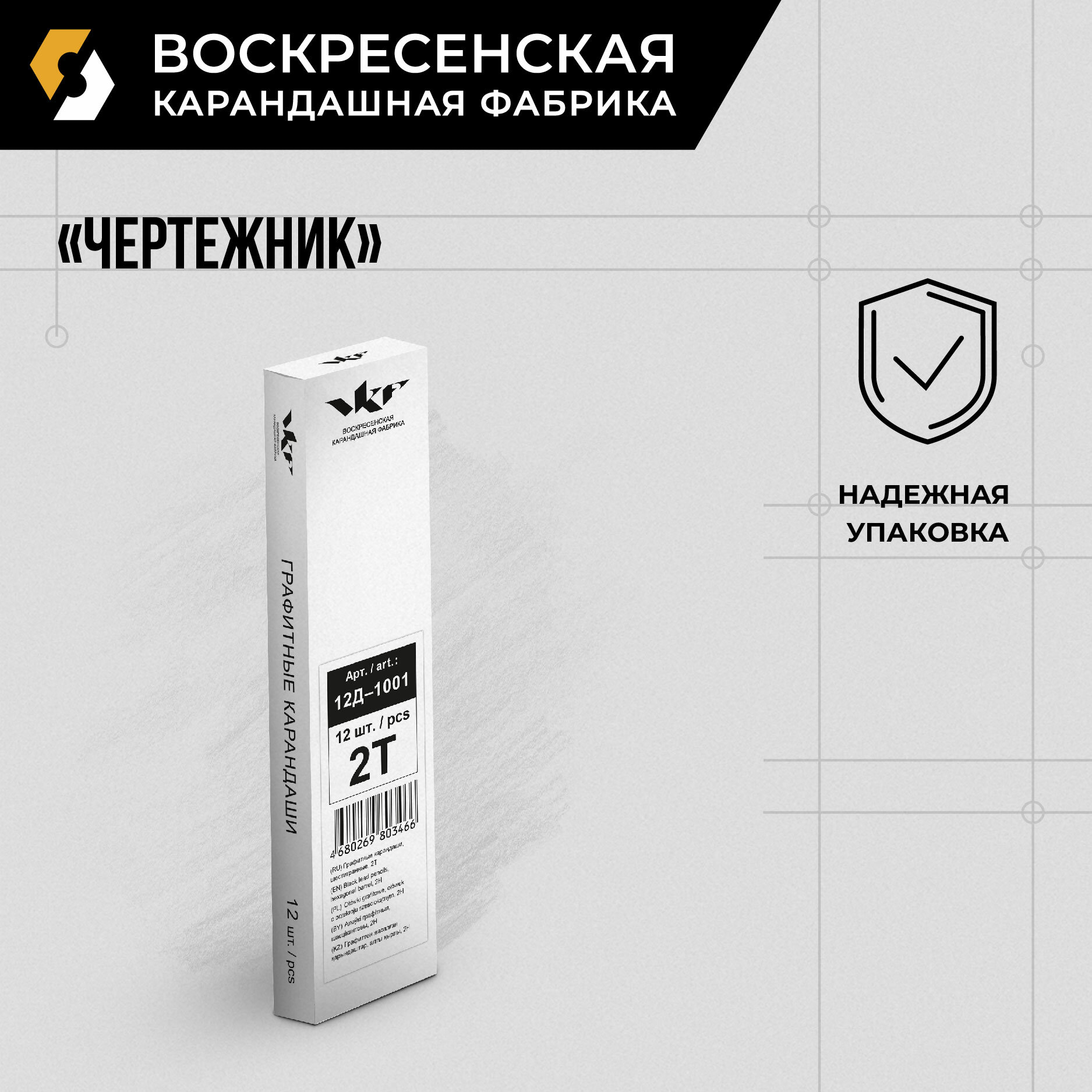 Карандаш 12 шт. графитный (простой) ВКФ "Чертежник" заточенный 2Т (2H) интересное: