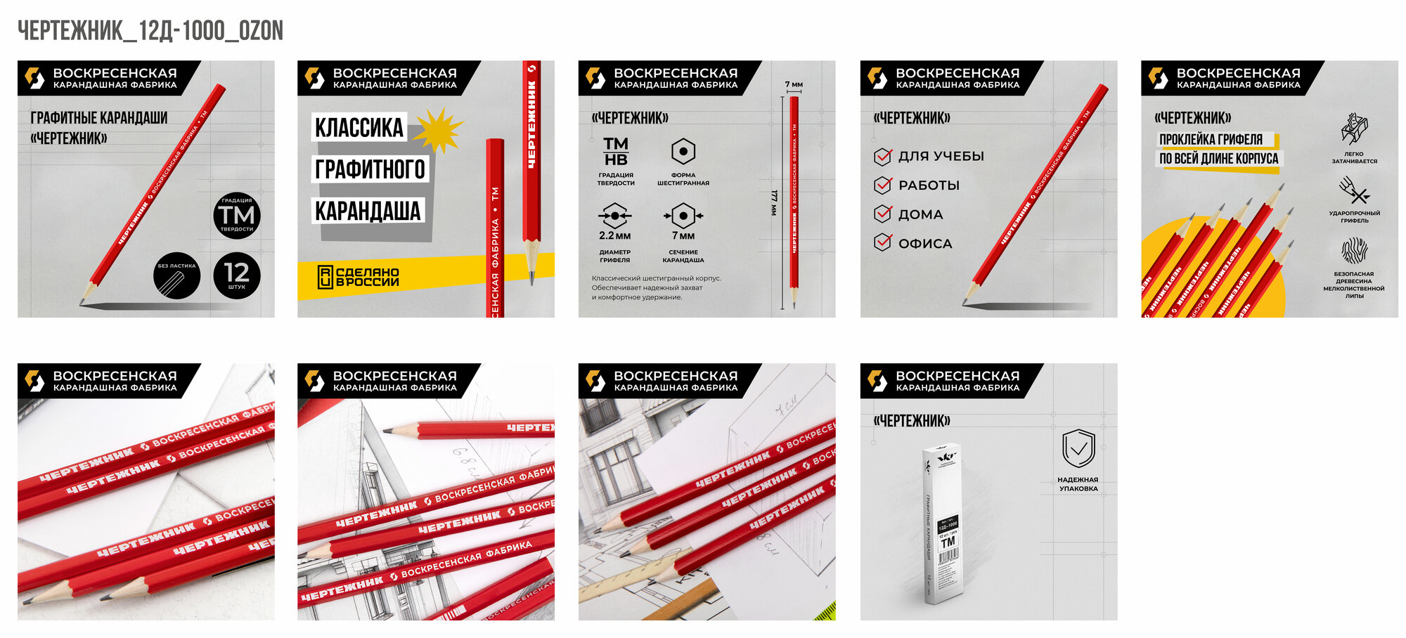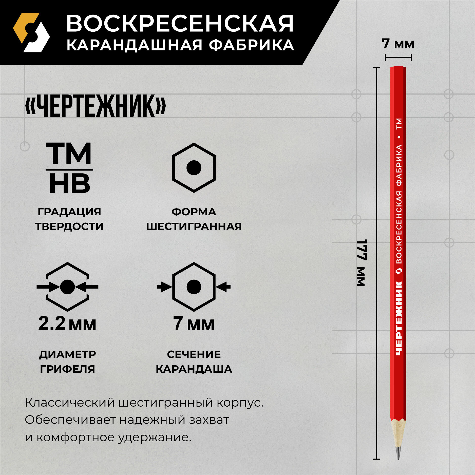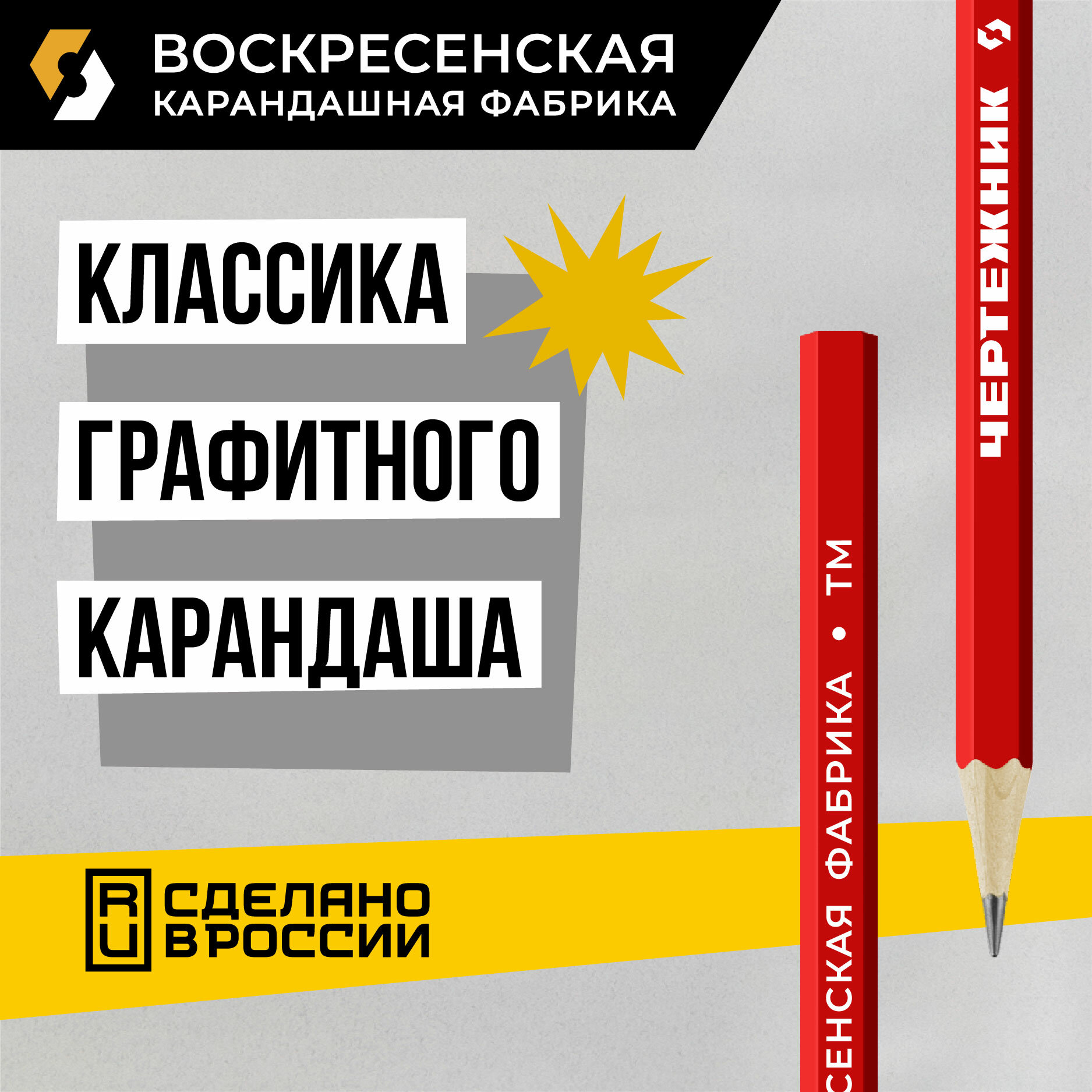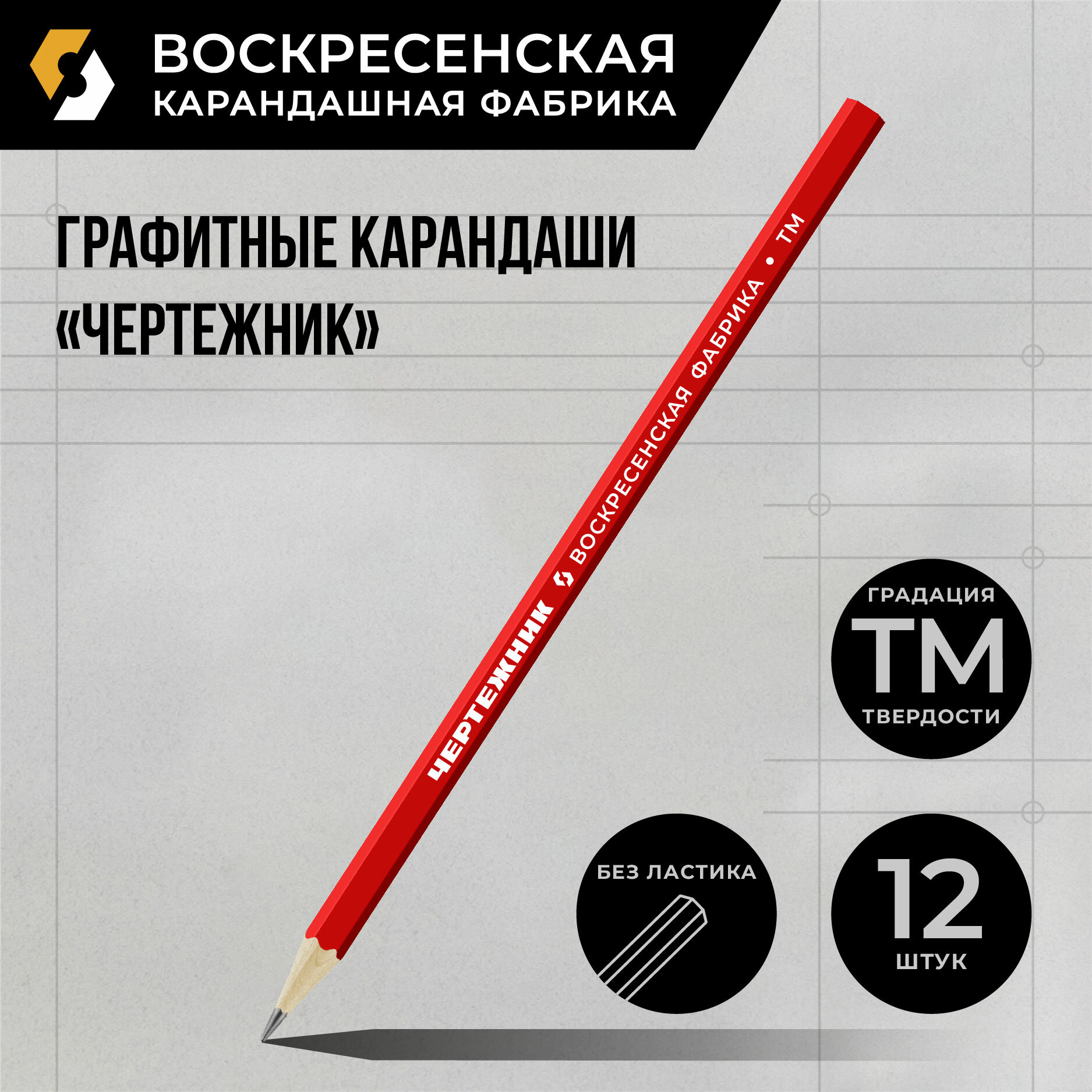 Карандаш 12 шт. графитный (простой) ВКФ "Чертежник" заточенный ТМ (HB) интересное: