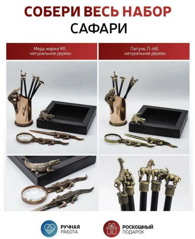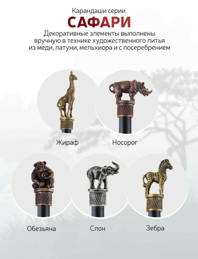 Карандаш чернографитный Сафари-Зебра латунный в футляре