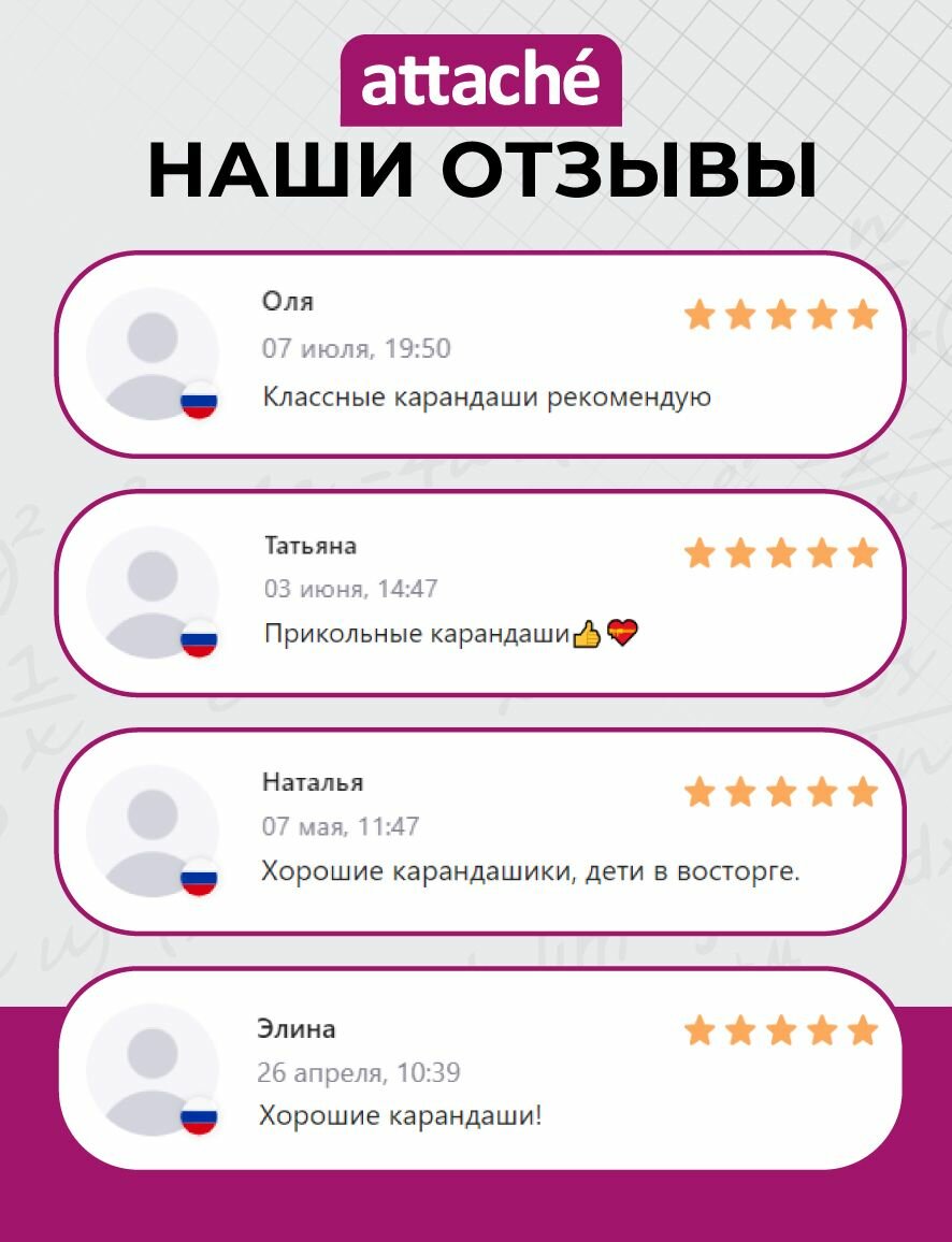 Ниже Вы можете прочитать отзывы на Карандаши простые с ластиком Attache, чернографитные, НВ, набор 12 шт, ознакомится с подробными характеристиками, посмотреть интересные обзоры и фотографии на Карандаши простые с ластиком Attache, чернографитные, НВ, набор 12 шт.