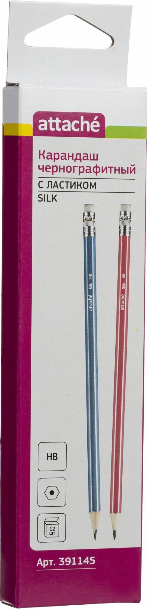 Купить Карандаши простые с ластиком Attache, чернографитные, НВ, набор 12 шт