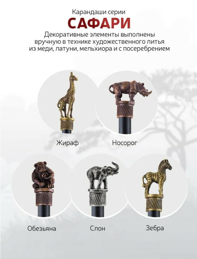 Карандаш чернографитный "Сафари-Обезьяна" латунный с черненим интересное: