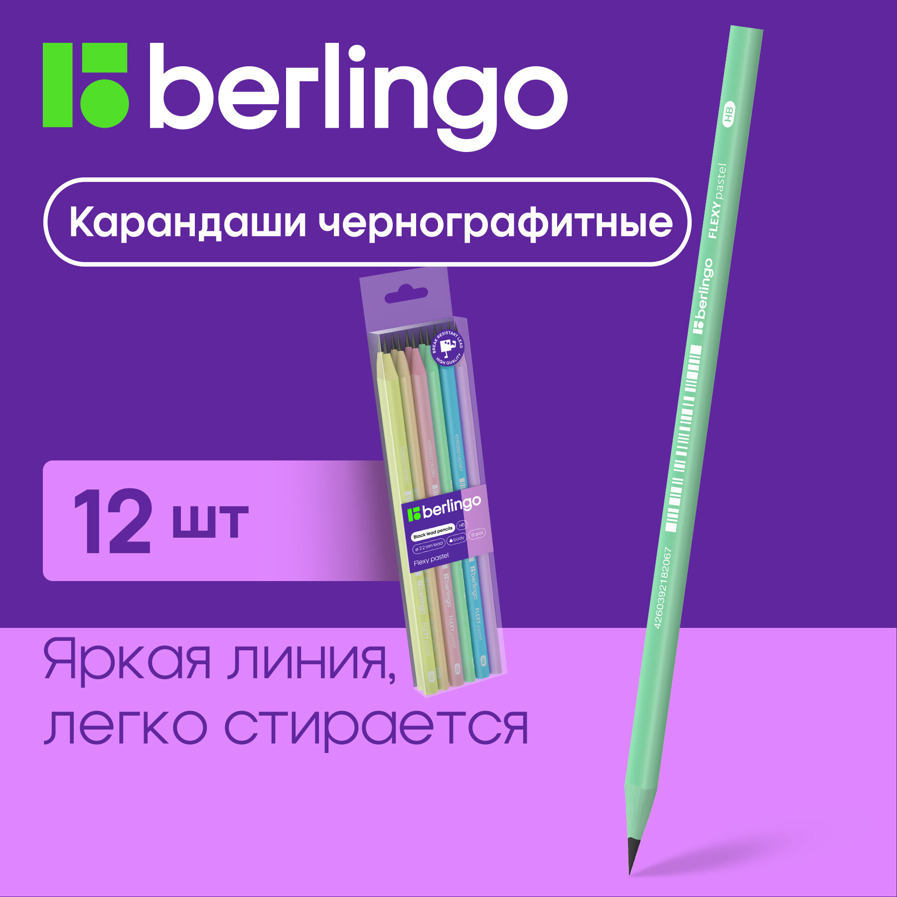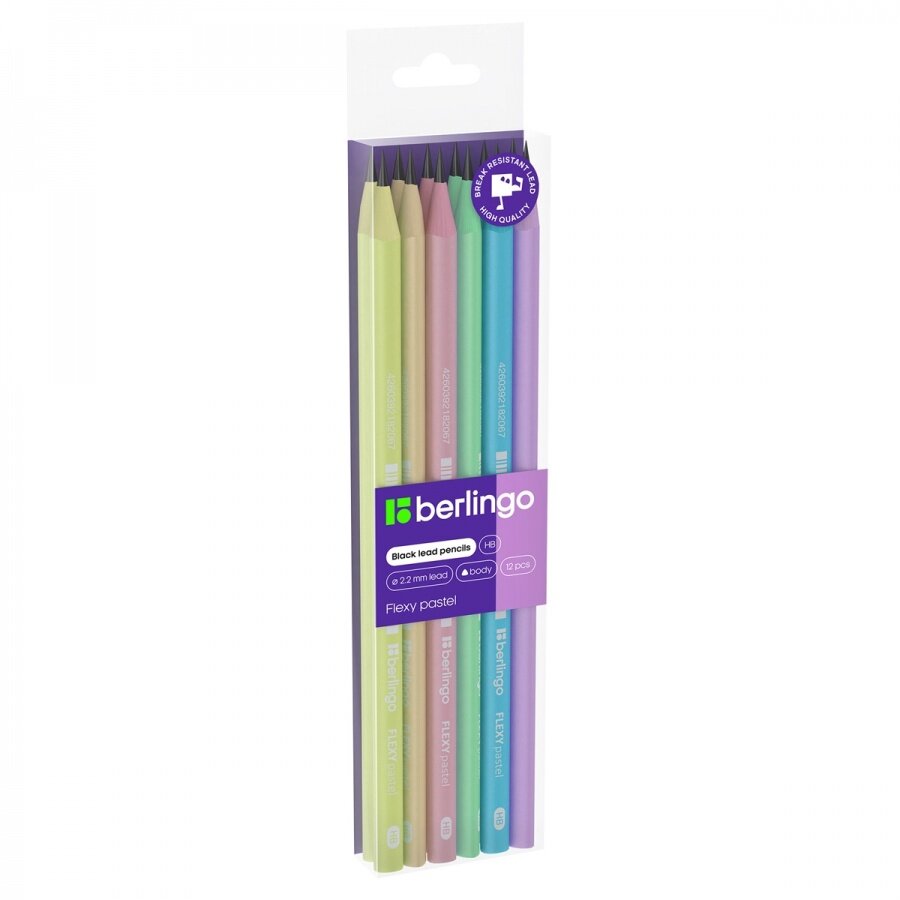Карандаш ч/г Berlingo "Flexy Pastel" HB, трехгранные, заточенные, пластиковые, упаковка 12 шт. интересное: