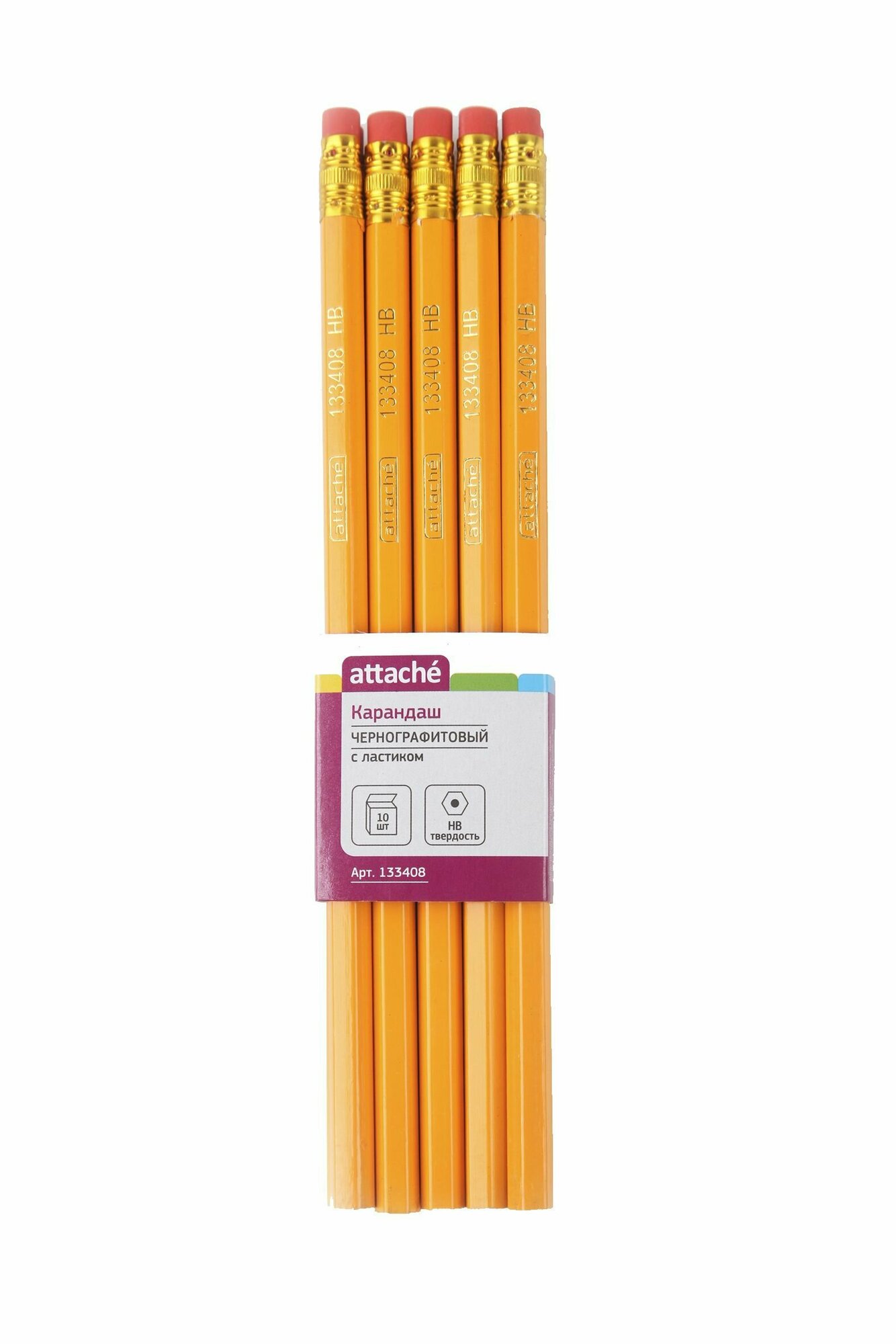 Купить Карандаши простые с ластиком Attache, чернографитные, НВ, набор 10 шт