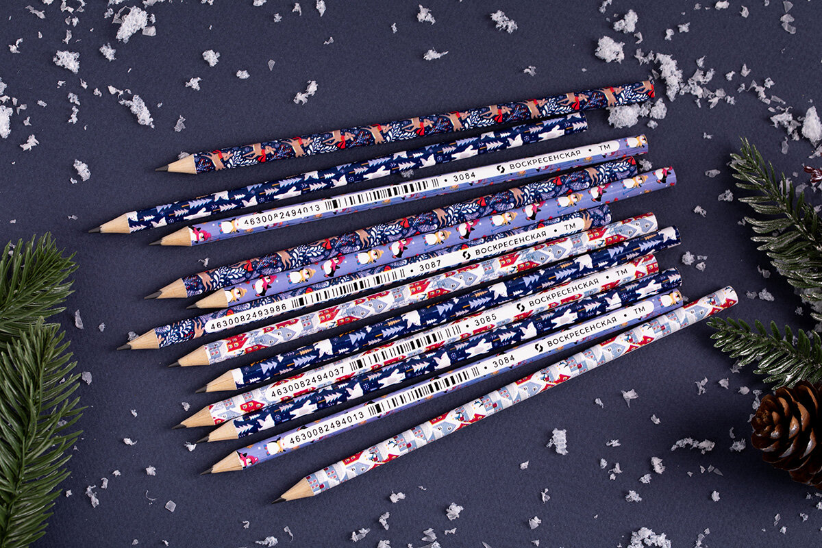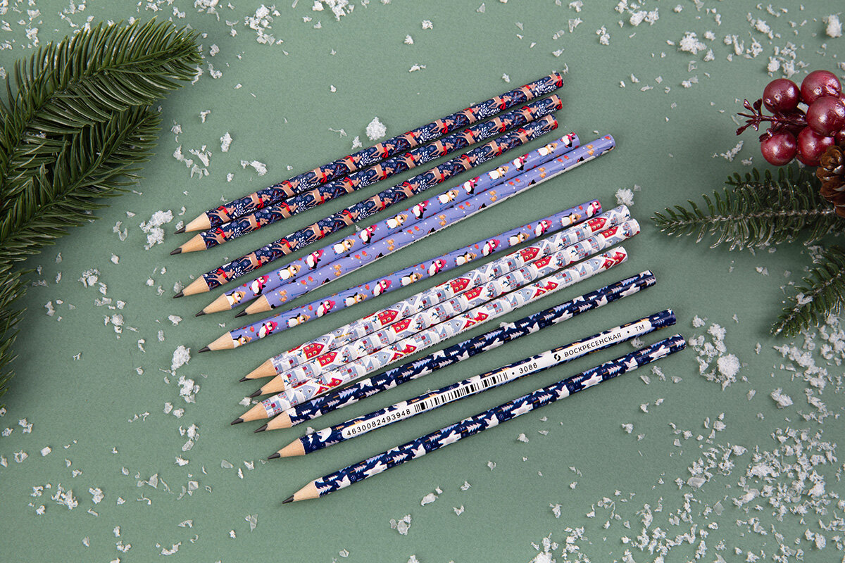 Карандаш 12 шт. графитный (простой) ВКФ "Принты" круглый заточенный ТМ (HB) Зимний олень