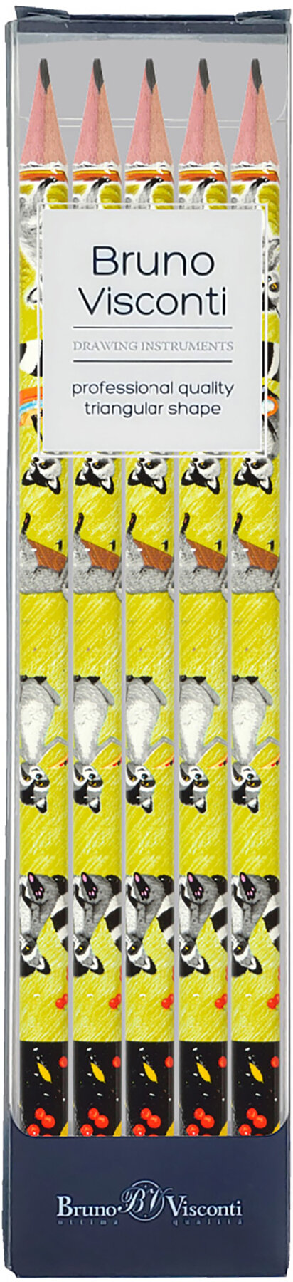 Купить Набор карандашей чернографитовых HappyGraphix. Енот на самокате, НВ, 5 штук