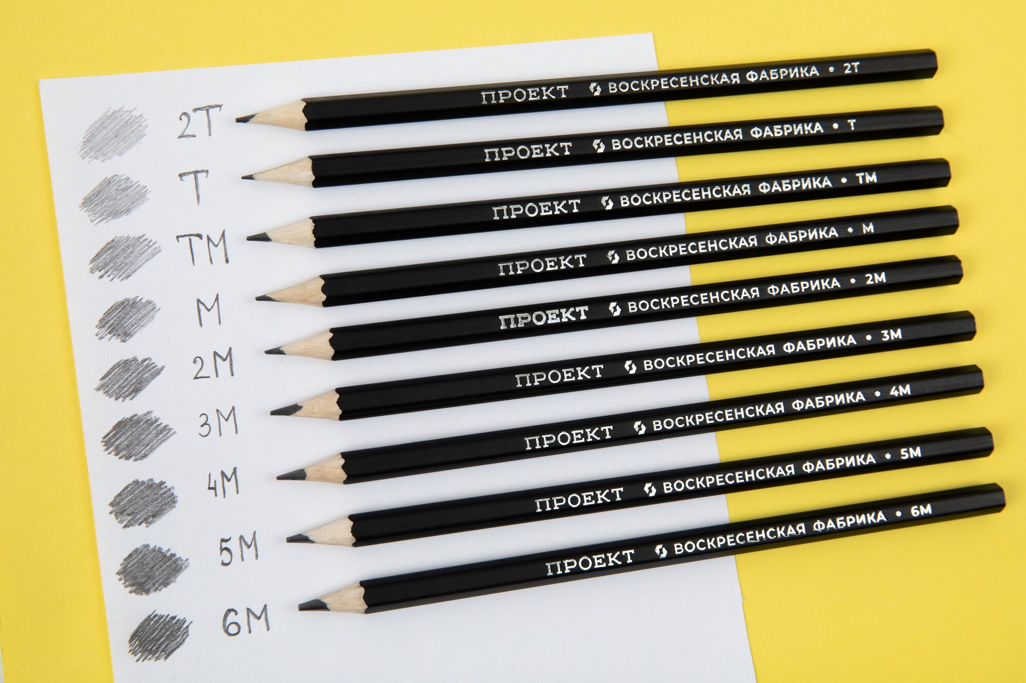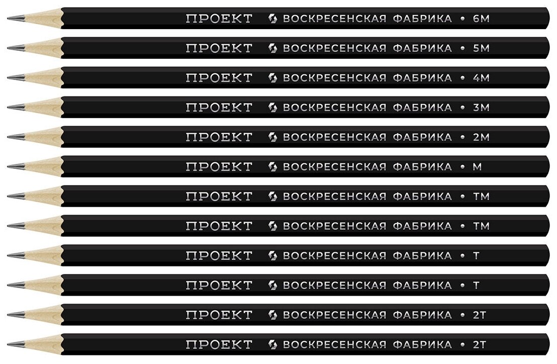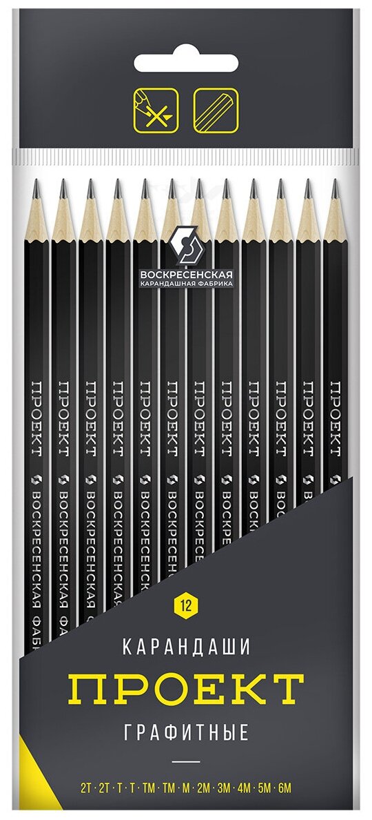 Набор карандашей 12 шт. графитный простой ВКФ "Проект" 12P-4010 заточенный ассорти 2Т(2Н) - 6М(6В) интересное: