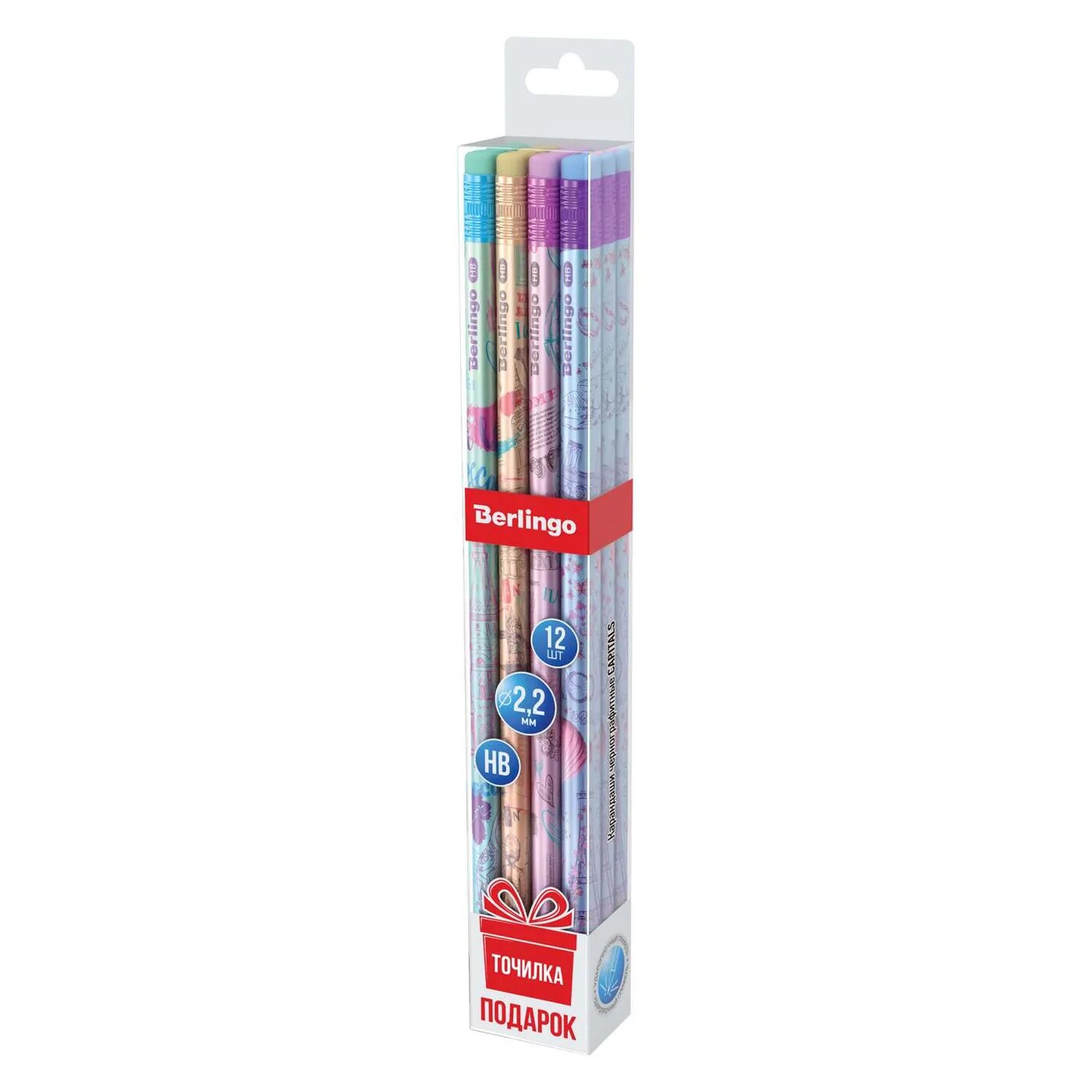 Набор карандашей ч/г Berlingo "Capitals" 12шт, HB, круглый, заточен, с ластиком, точилка, пластик. интересное: