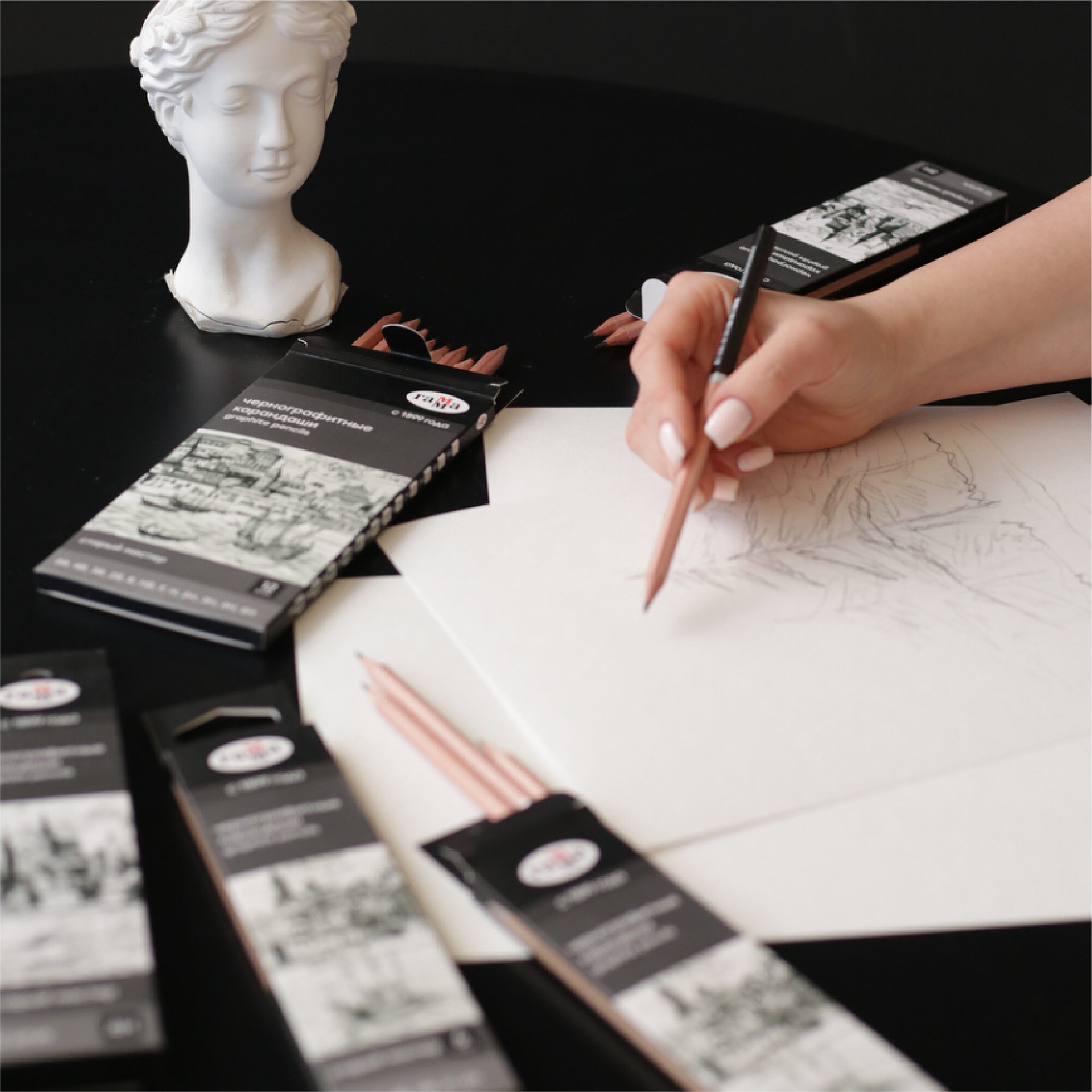 Набор карандашей Гамма Старый Мастер, чернографитные, шестигранные, для черчения и графики, 6 шт