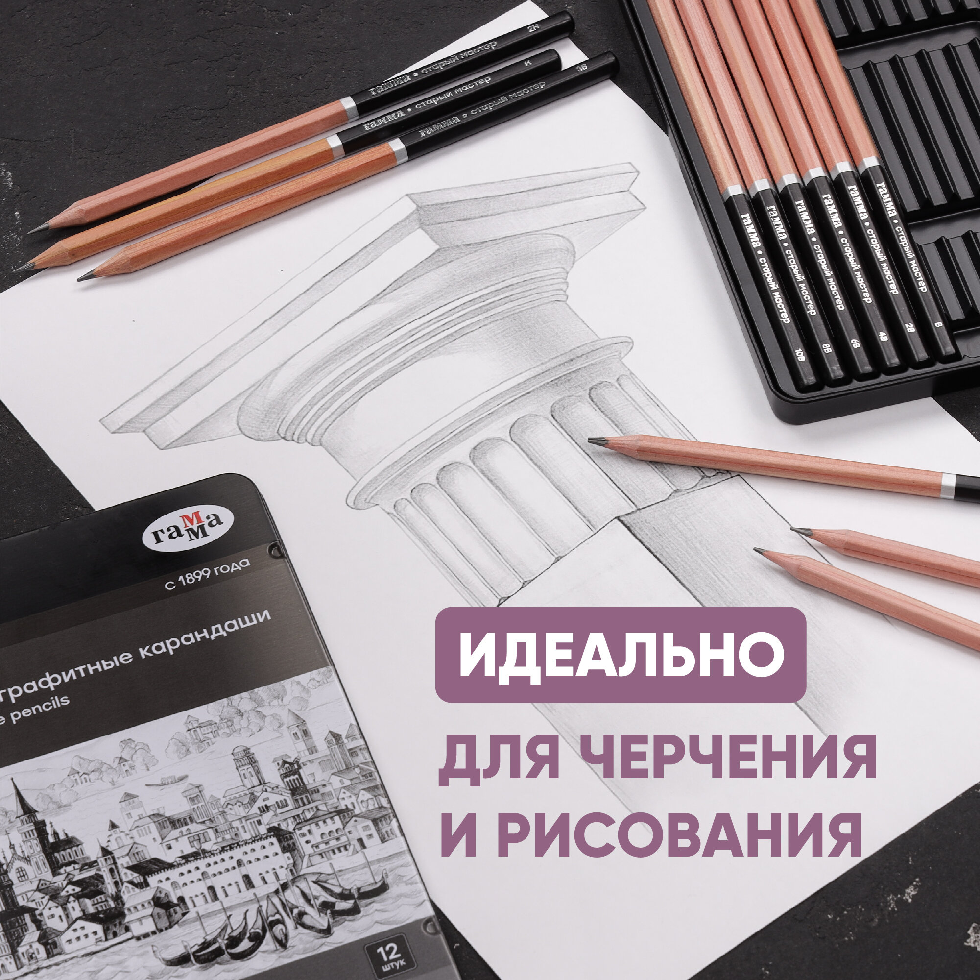 СохранитьКарандаши простые чернографитные Гамма "Старый Мастер" / 8B-HB 6 шт, шестигранные для графики, черчения, школы, рисования, скетчинга интересное: