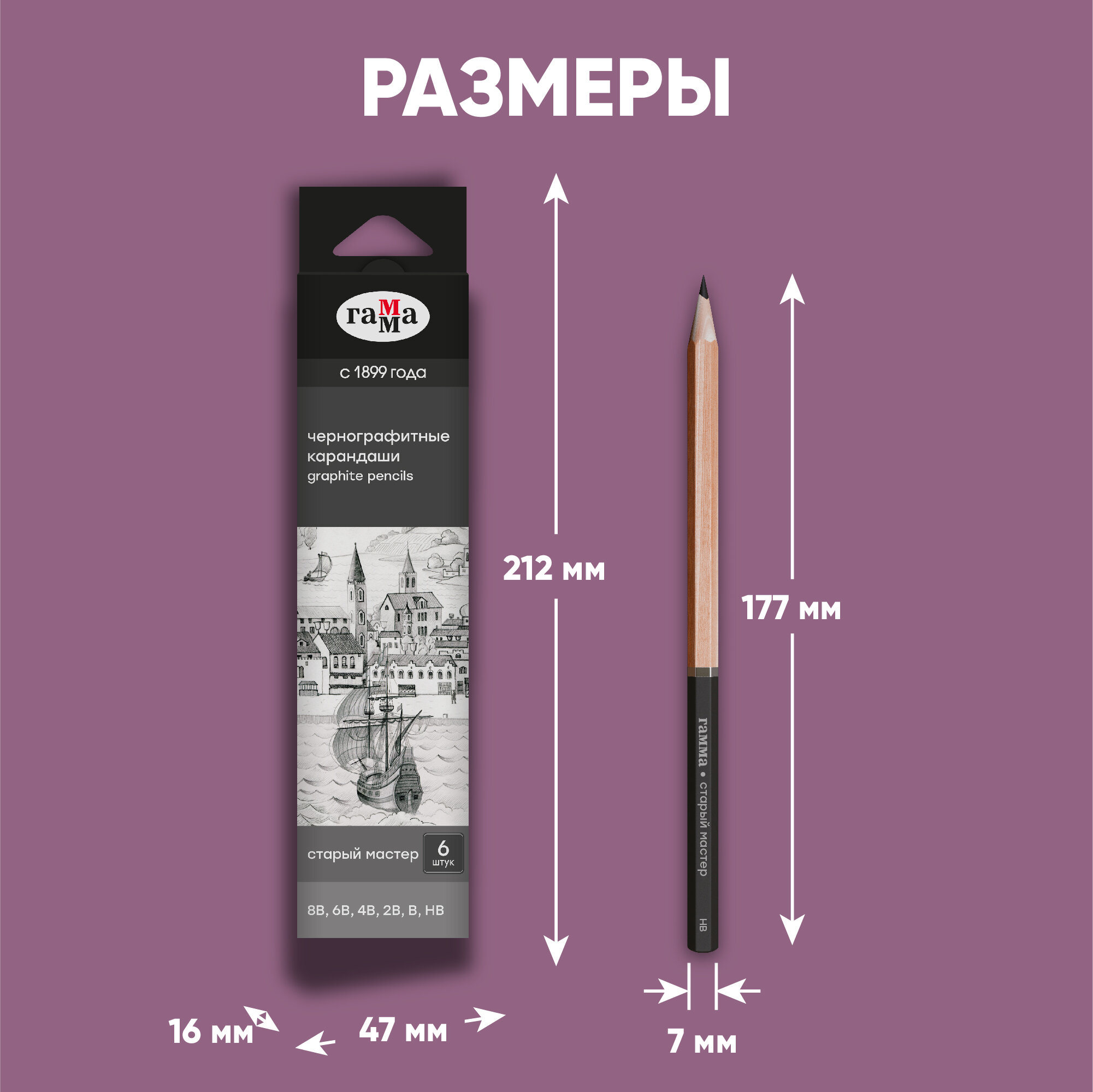 Купить Карандаши простые чернографитные Гамма "Старый Мастер" / 8B-HB 6 шт, шестигранные для графики, черчения, школы, рисования, скетчинга