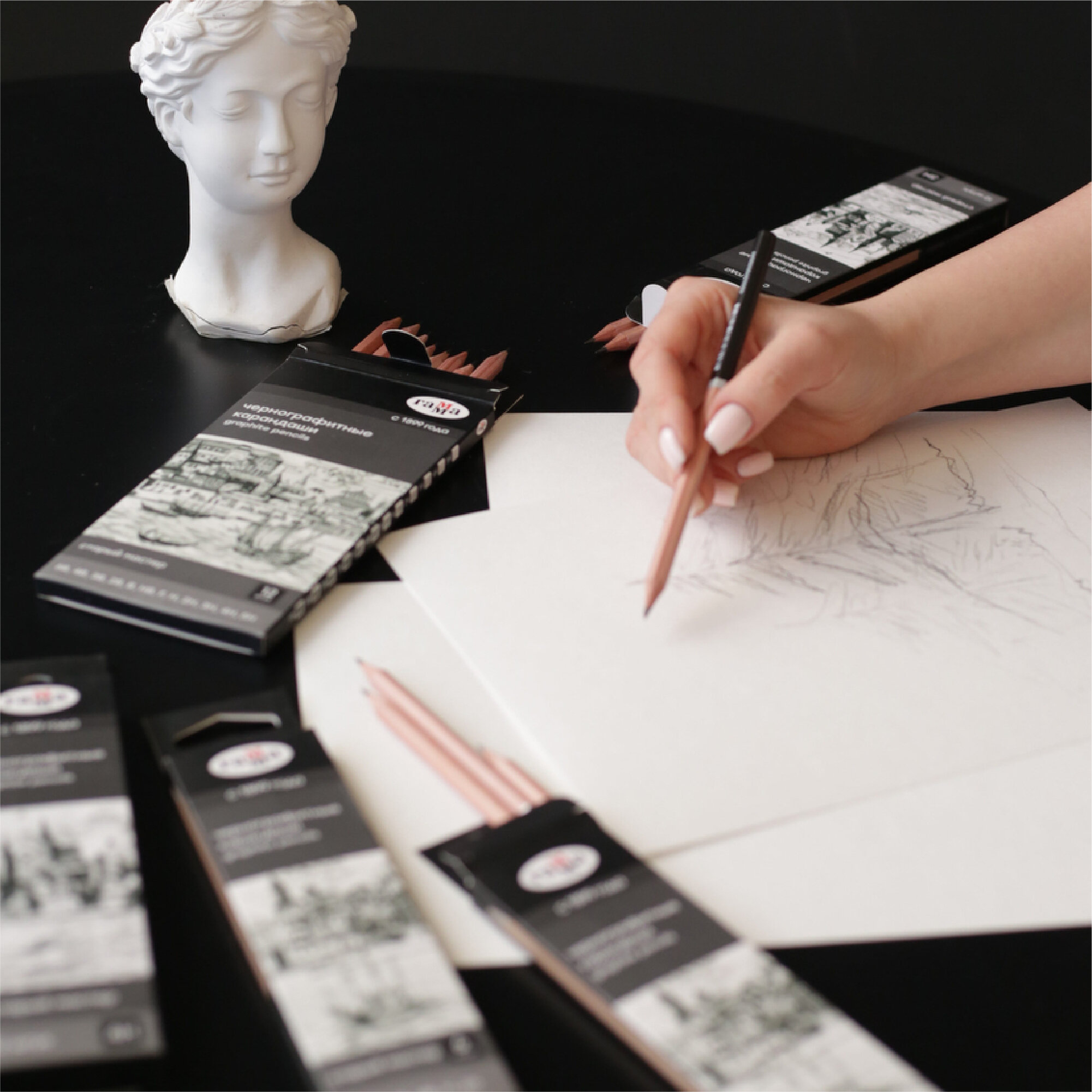 Набор карандашей Гамма Старый Мастер, чернографитные, шестигранные, для черчения и графики, 6 шт