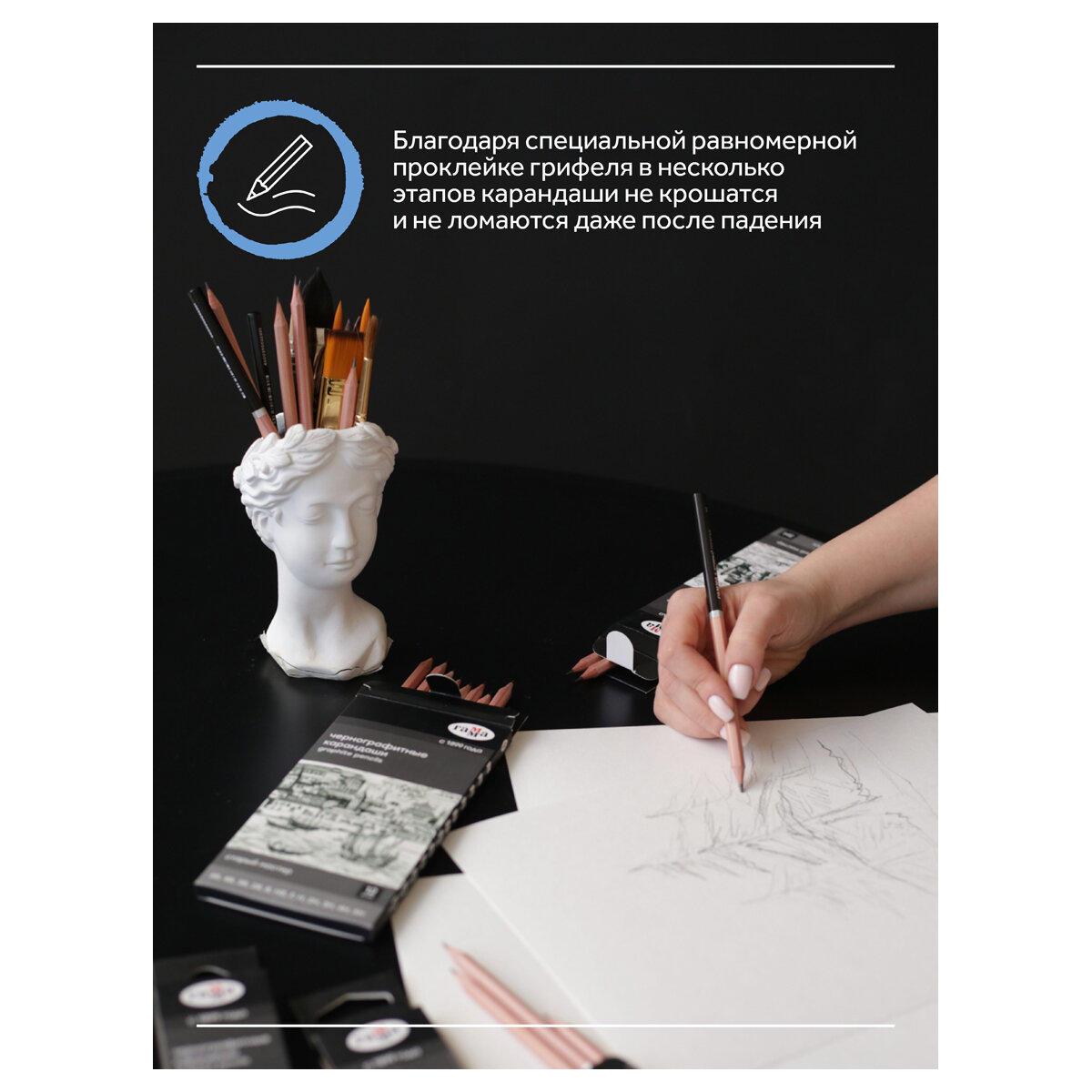 Карандаши простые чернографитные Гамма "Старый Мастер" / 8B-HB 6 шт, шестигранные для графики, черчения, школы, рисования, скетчинга