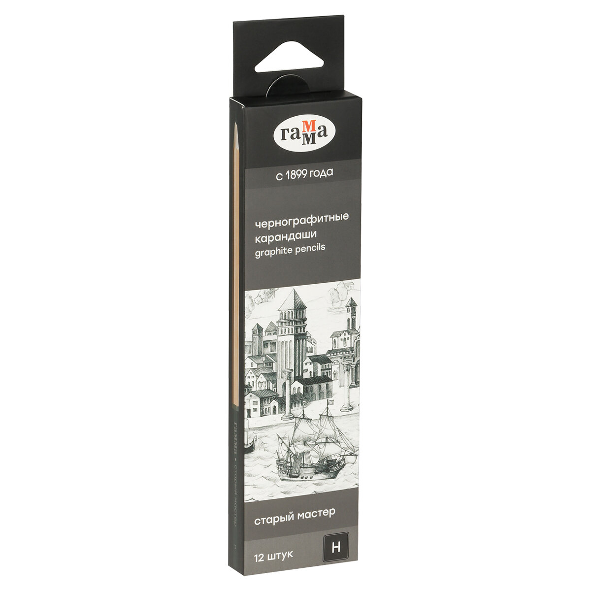 Купить Карандаш ч/г Гамма "Старый мастер", H, заточен, 12 штук