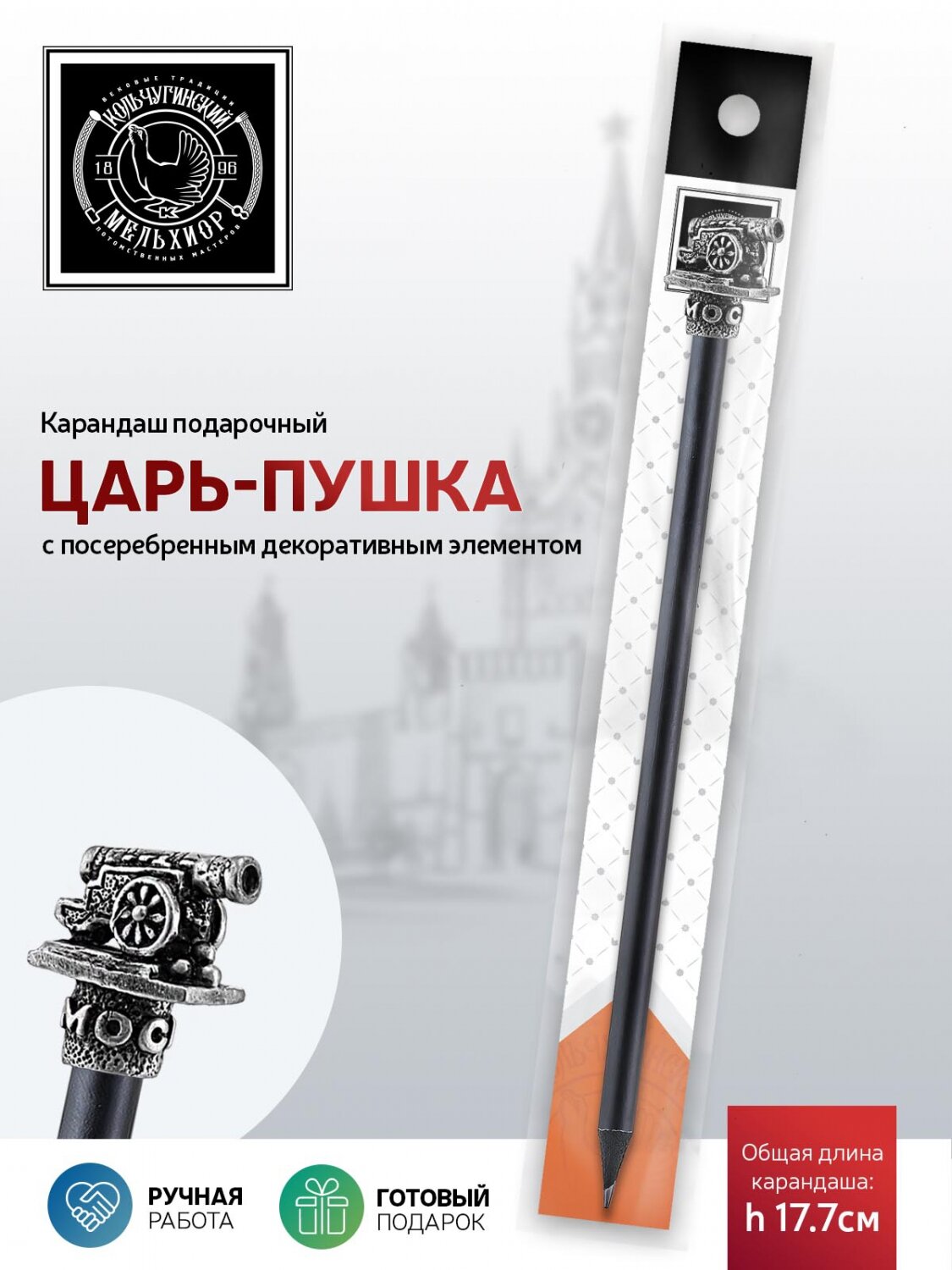 Карандаш чернографитный "Царь-пушка" латунный посеребренный с чернением интересное: