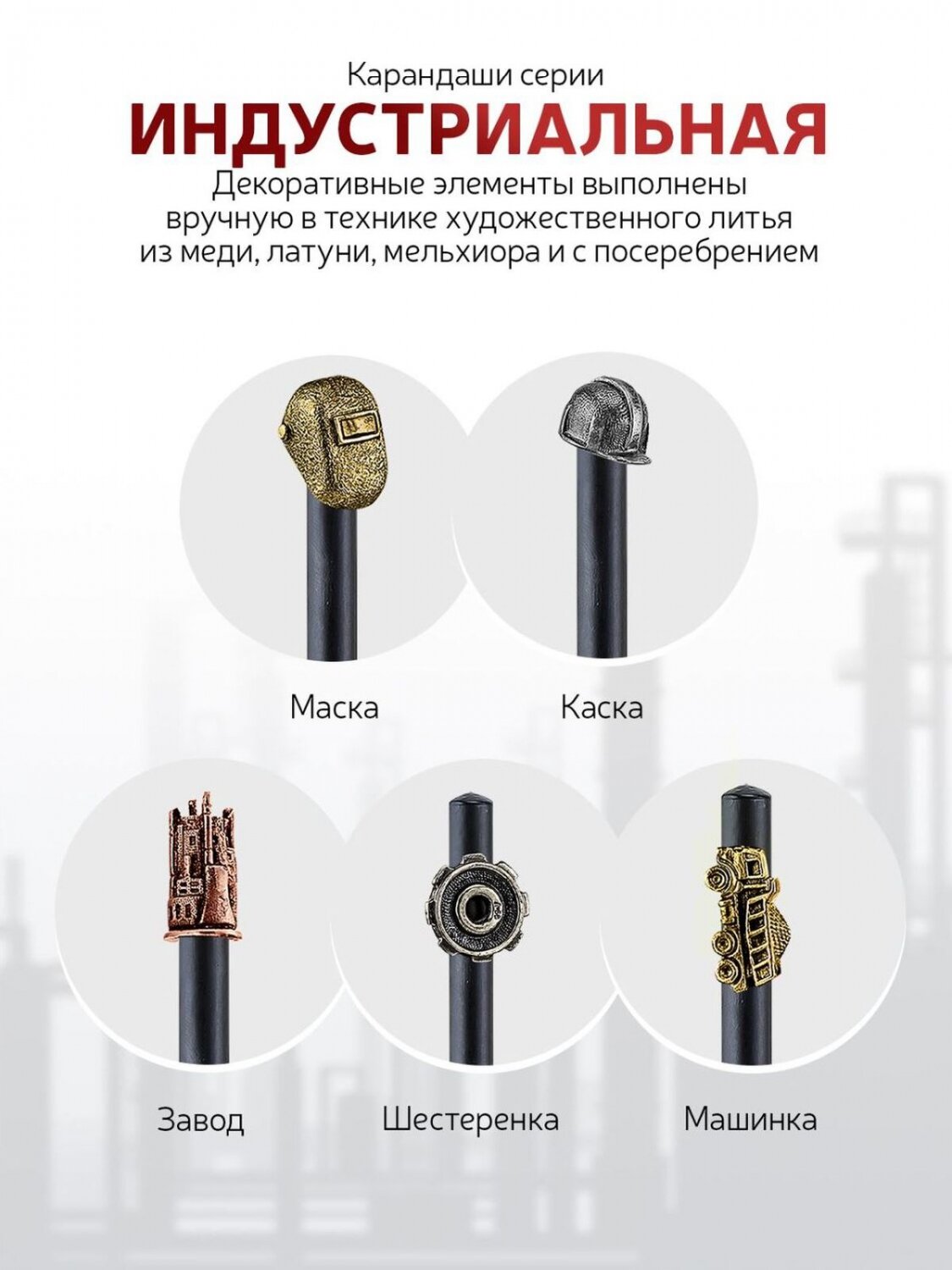 Купить Карандаш чернографитный "Индустриальный Завод сбоку" латунный с чернением