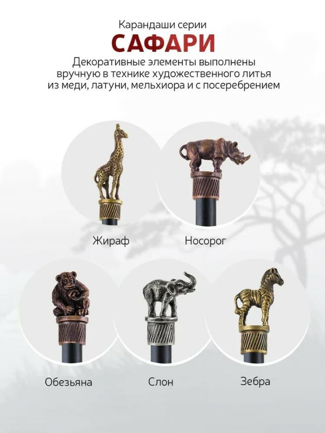 Карандаш чернографитный "Сафари-Обезьяна" латунный посеребренный с чернением интересное: