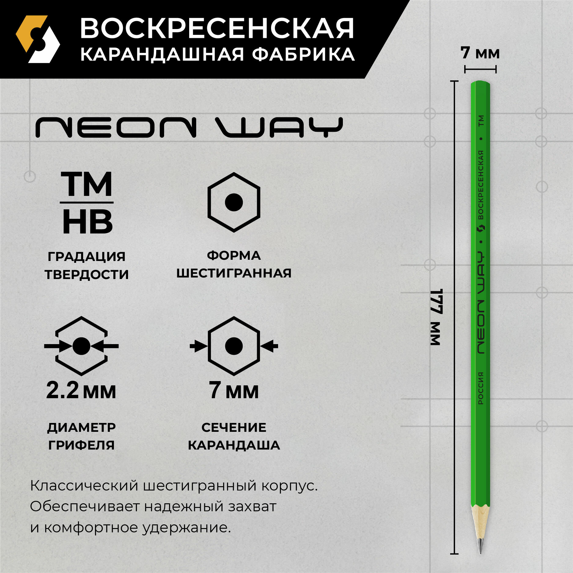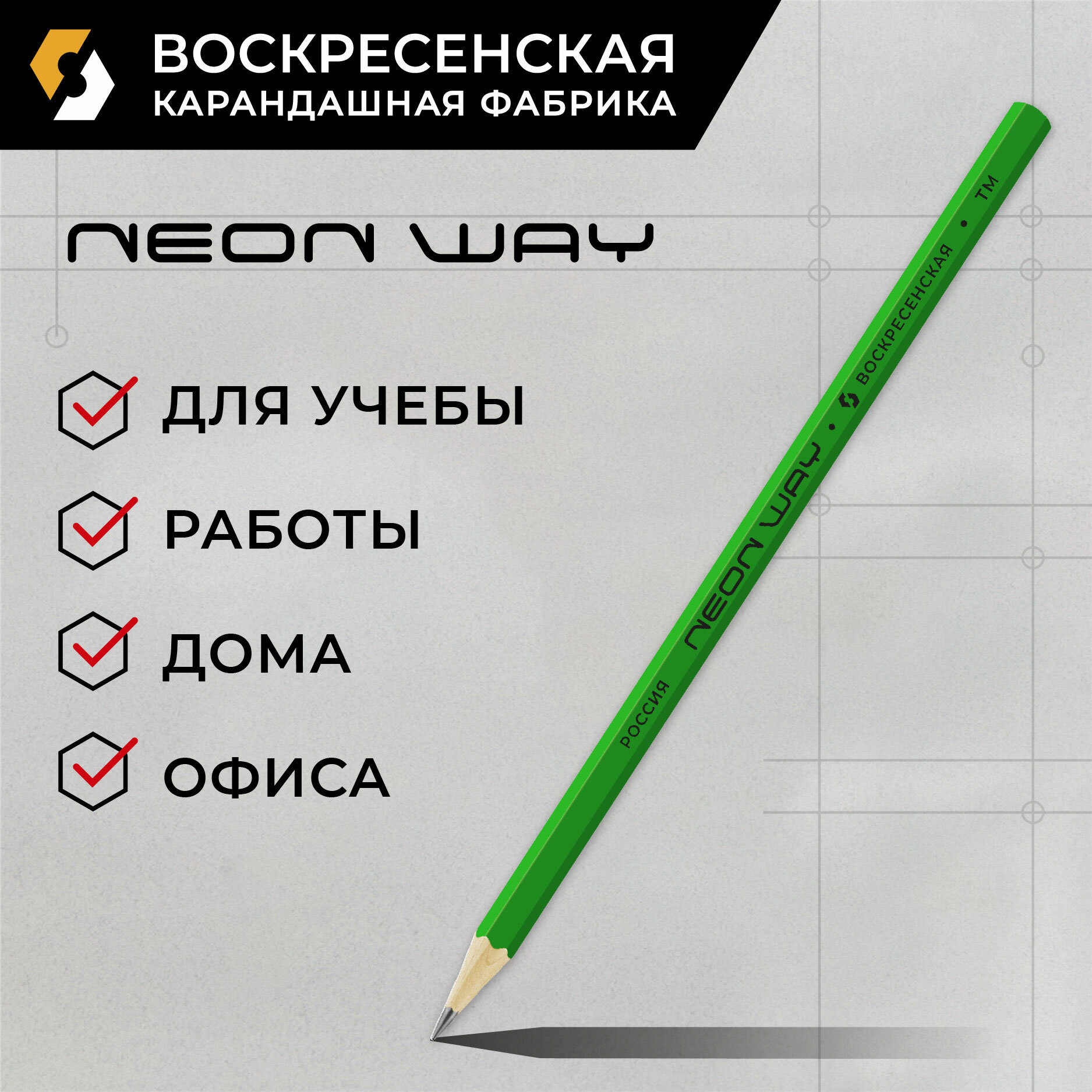 Карандаш 12 шт. графитный (простой) ВКФ "Neon way" неоновый заточенный ТМ (HB) зеленый интересное: