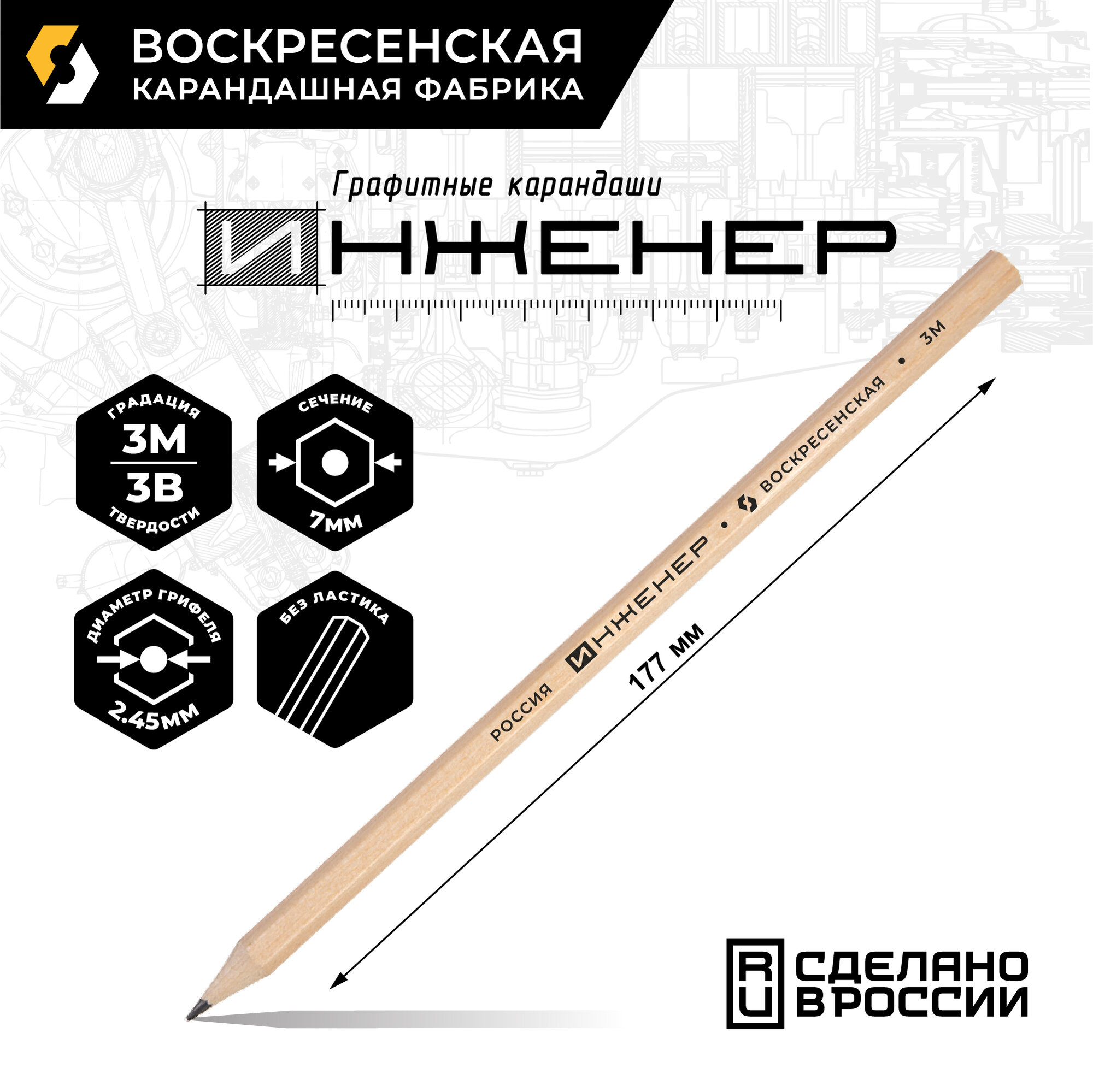 Карандаш ч/г Воскресенская карандашная фабрика "Инженер" 6М (6B), заточен, 72 штуки