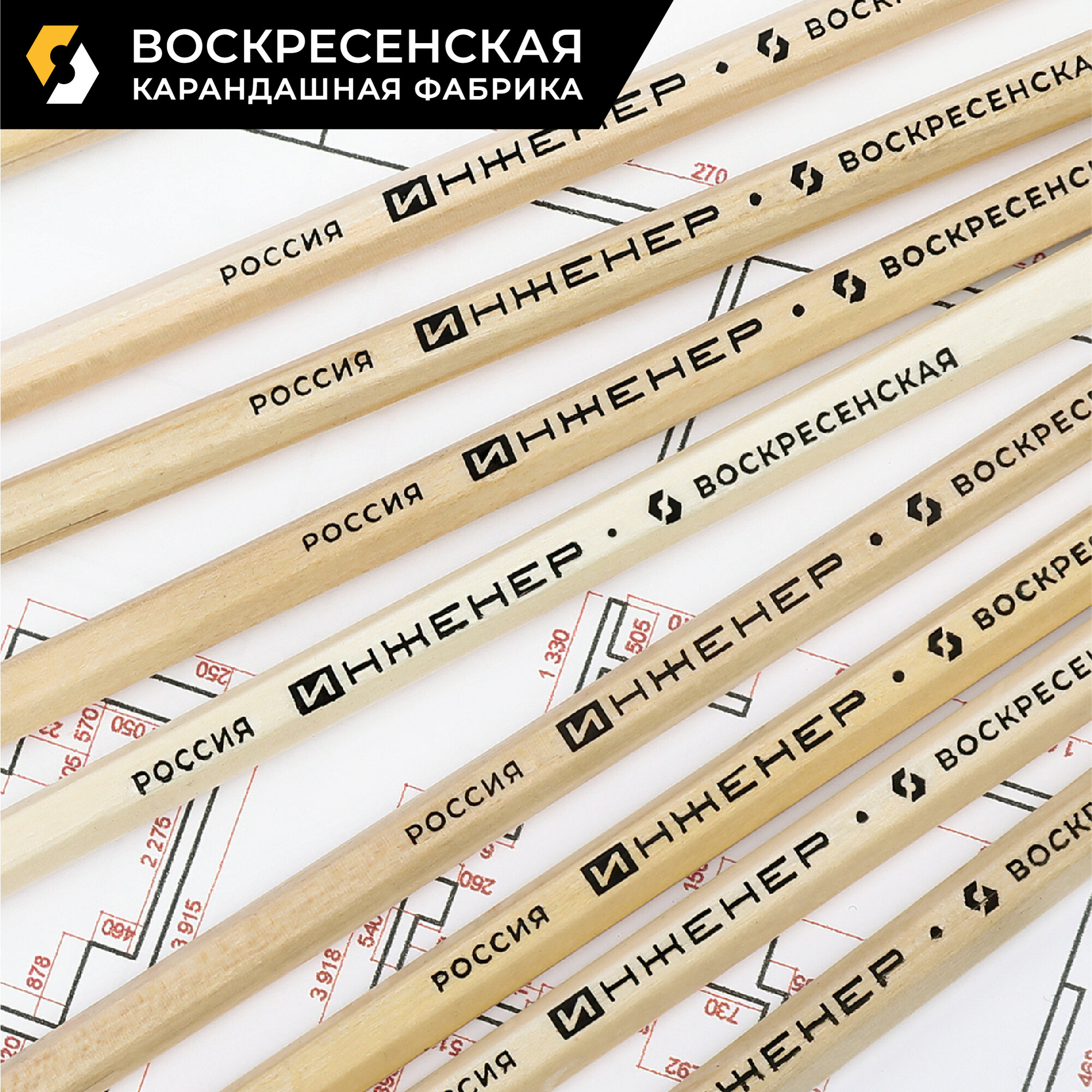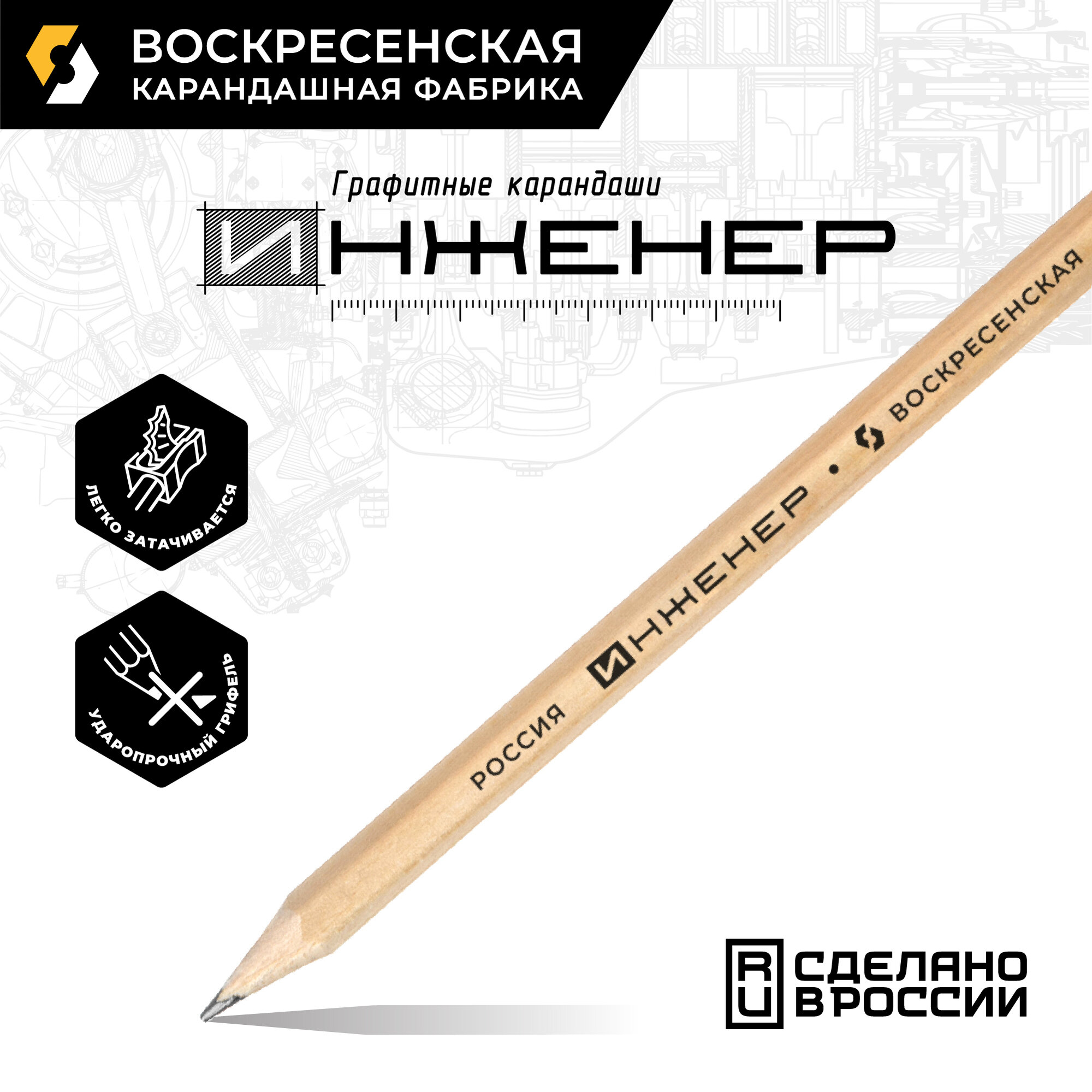 Карандаш ч/г Воскресенская карандашная фабрика "Инженер" 6М (6B), заточен, 72 штуки