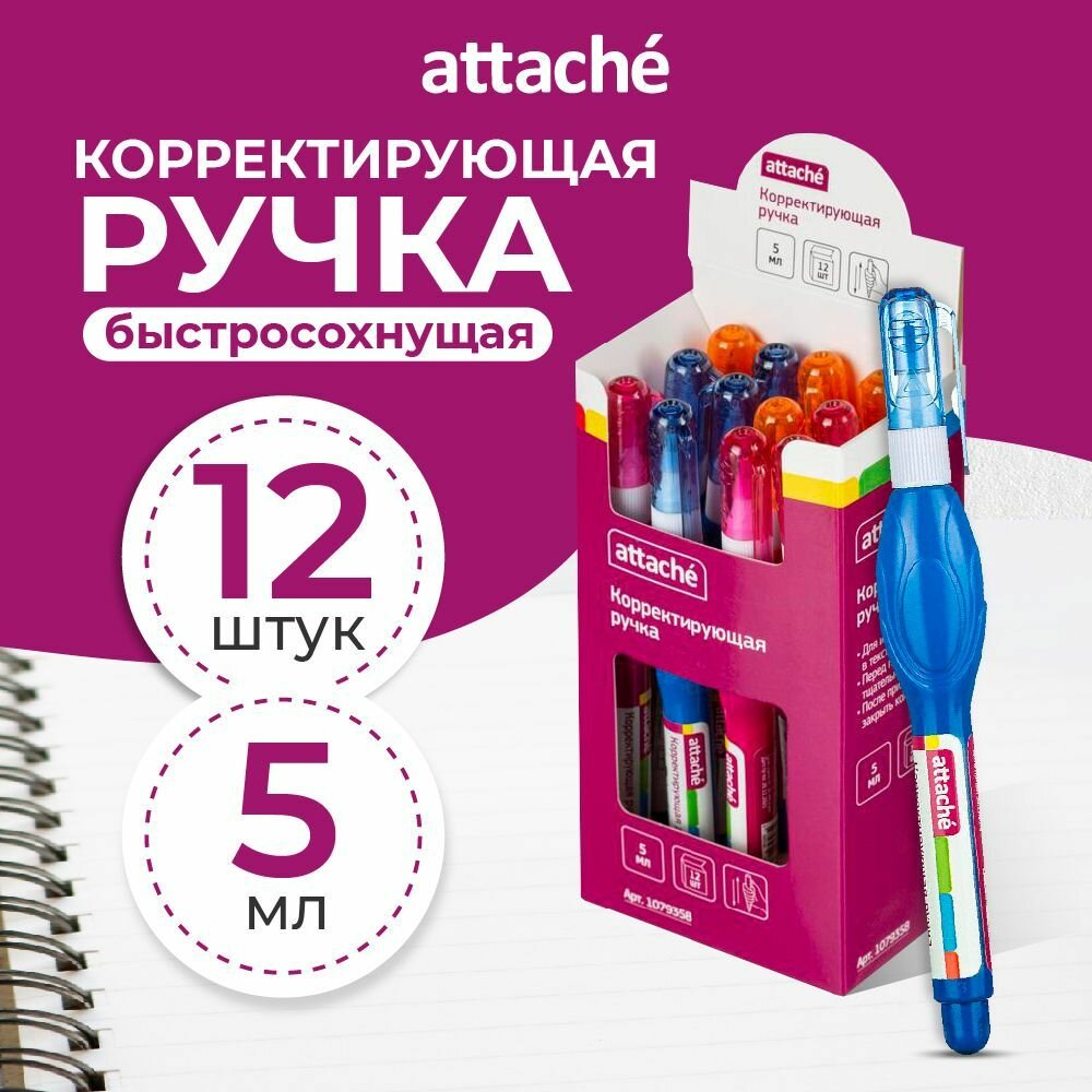 Корректор канцелярский ручка Attache, 5 мл, 12 шт интересное:
