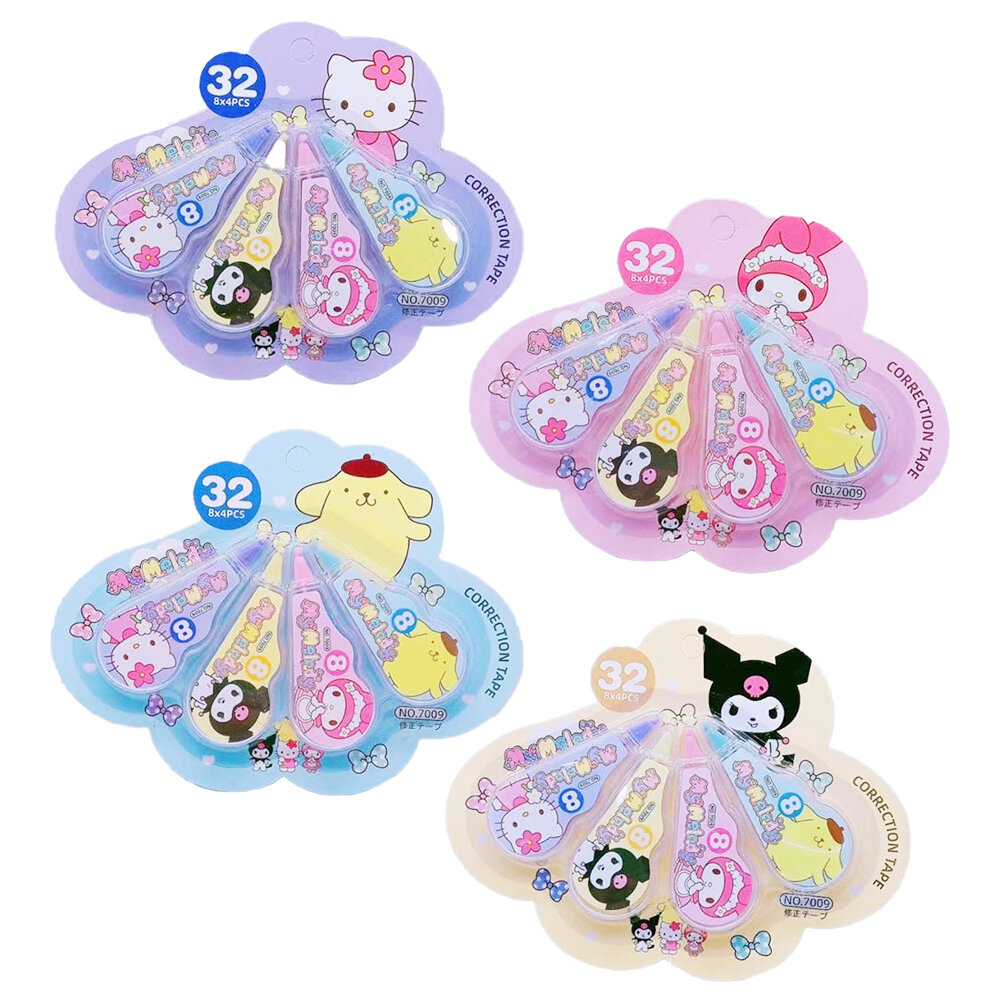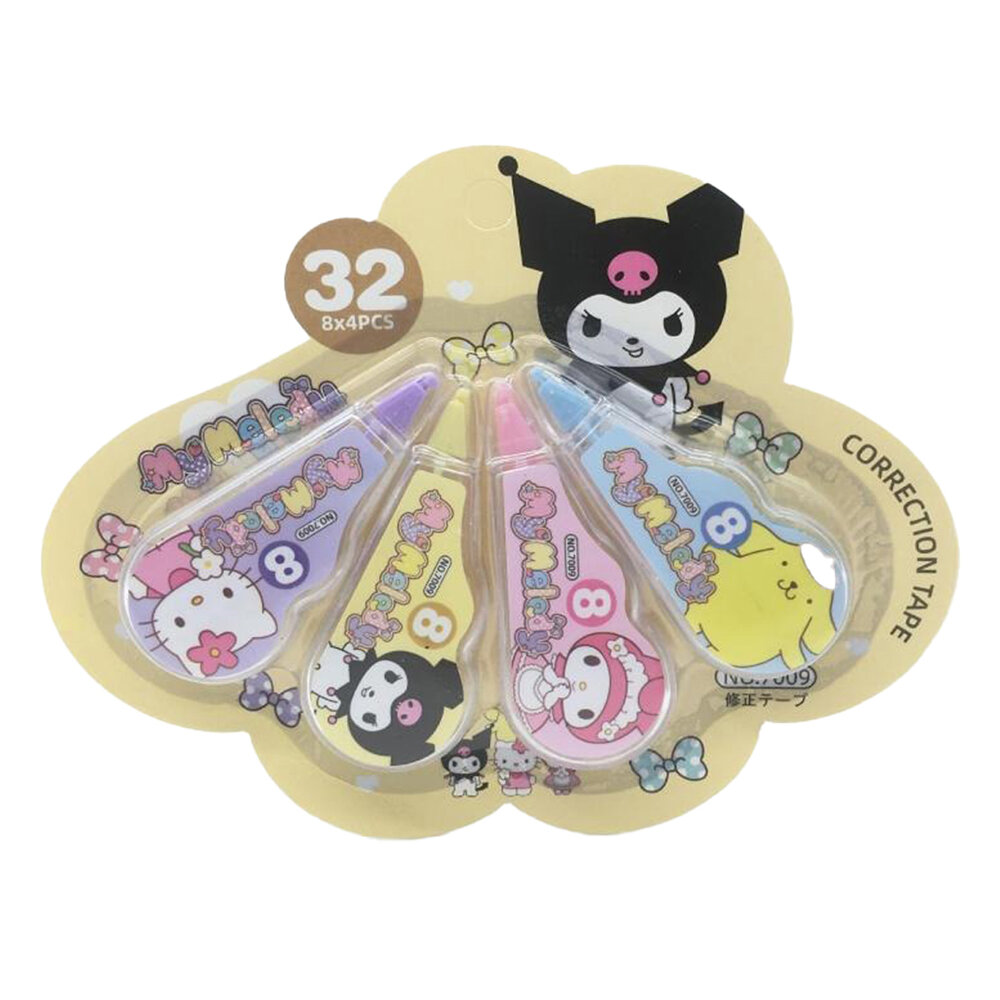 Ленточные корректоры JINUO "MyMelody" 4 шт по 8 метров, набор сухих корректирующих лент, замазка в разноцветном корпусе интересное: