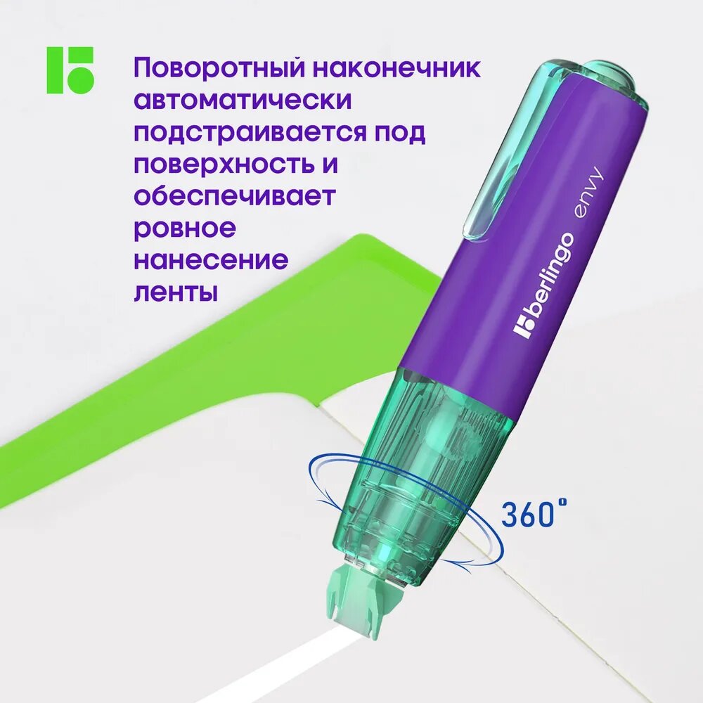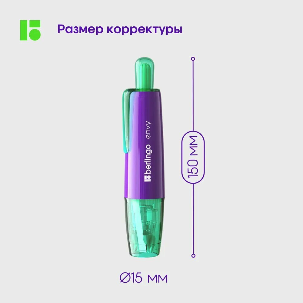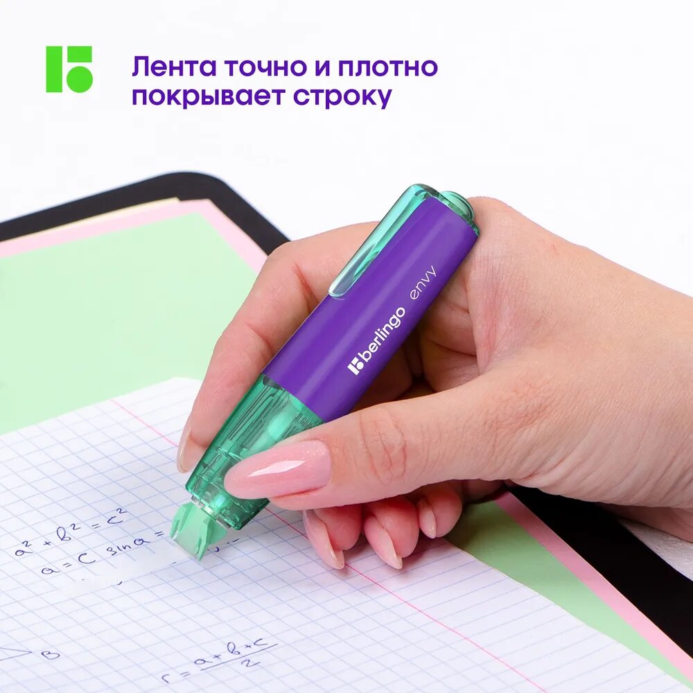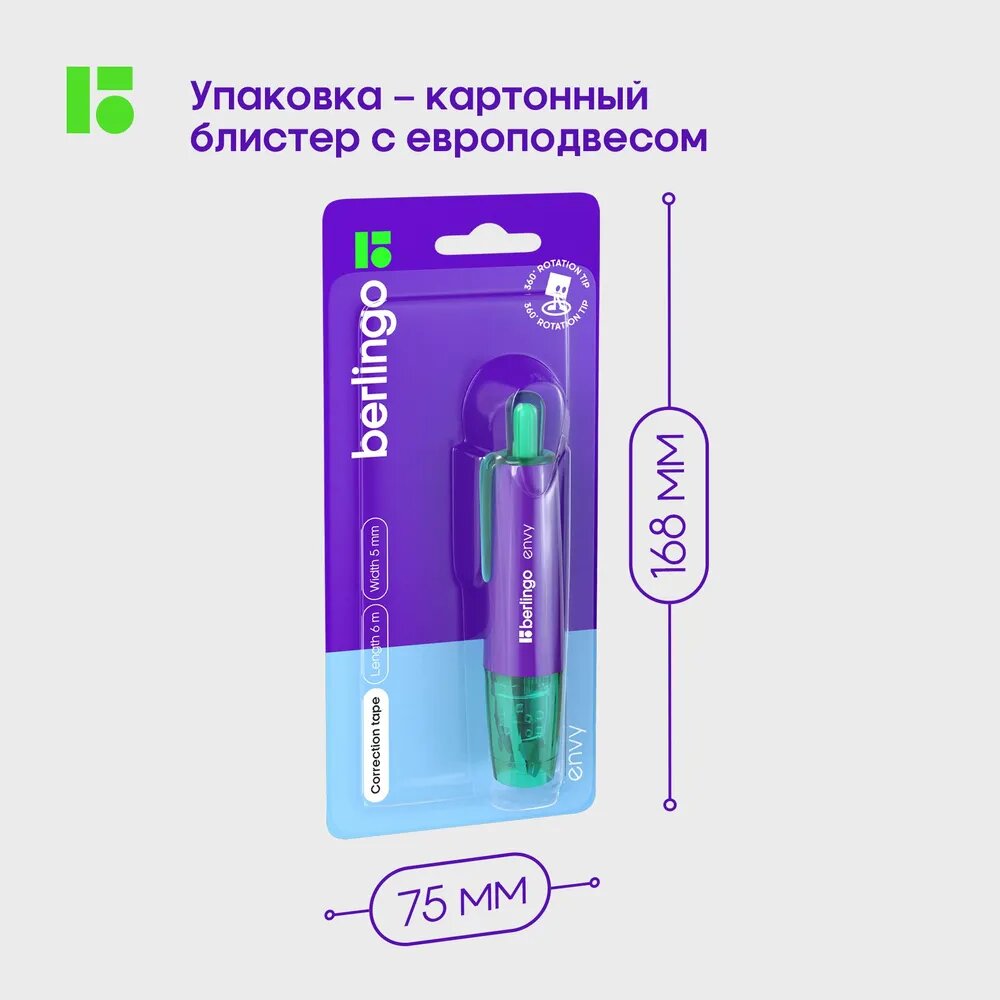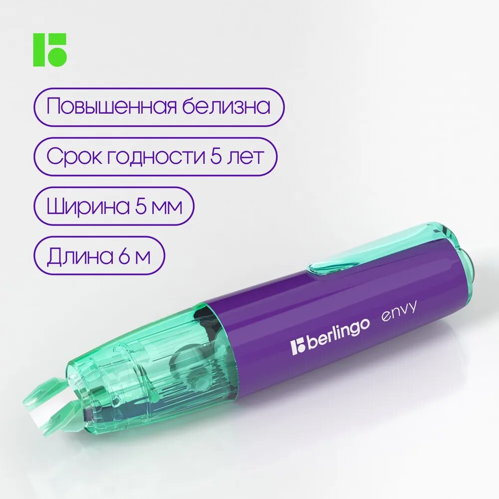 СохранитьКорректирующая лента Berlingo "Envy", 5мм*6м, мятный, блистер, европодвес интересное: