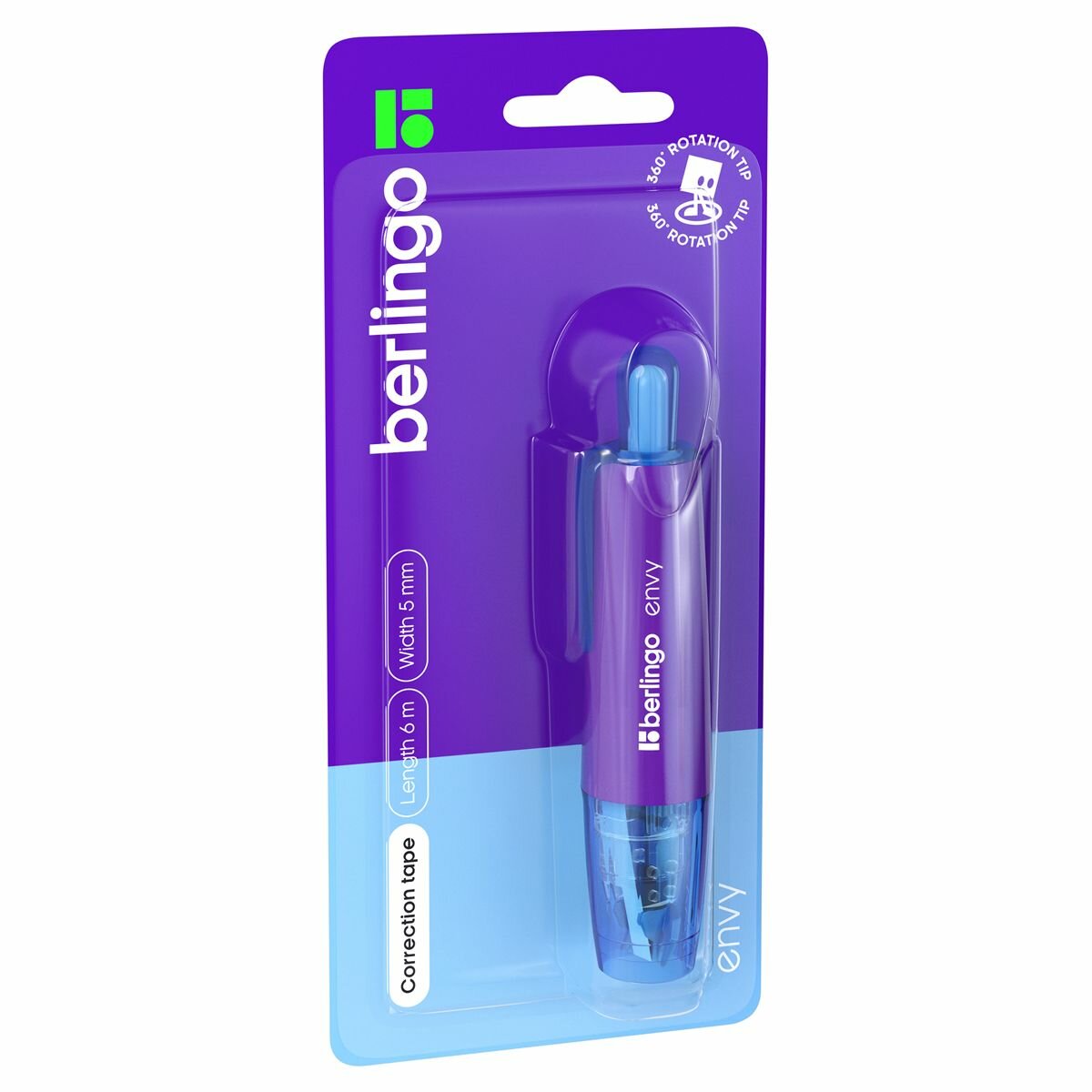 Корректирующая лента Berlingo "Envy", 5мм*6м, голубой, блистер, европодвес