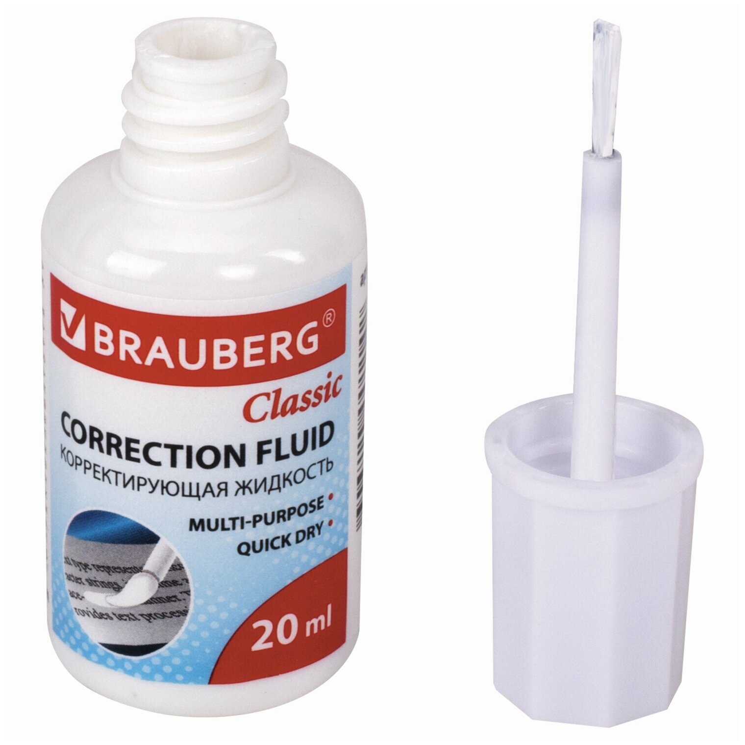 Корректирующая жидкость BRAUBERG "Classic", быстросохнущая, 20 мл, с кисточкой, 220255 интересное: