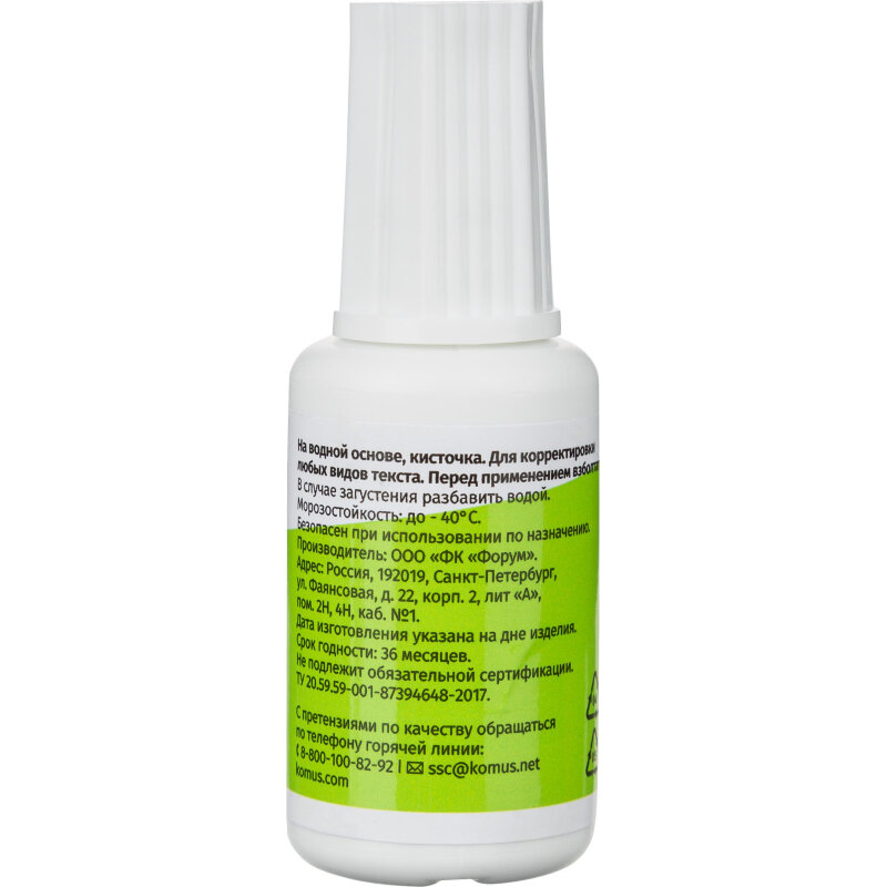 Корректирующая жидкость Комус 20мл на водной основе, кисточка, 4 штуки интересное:
