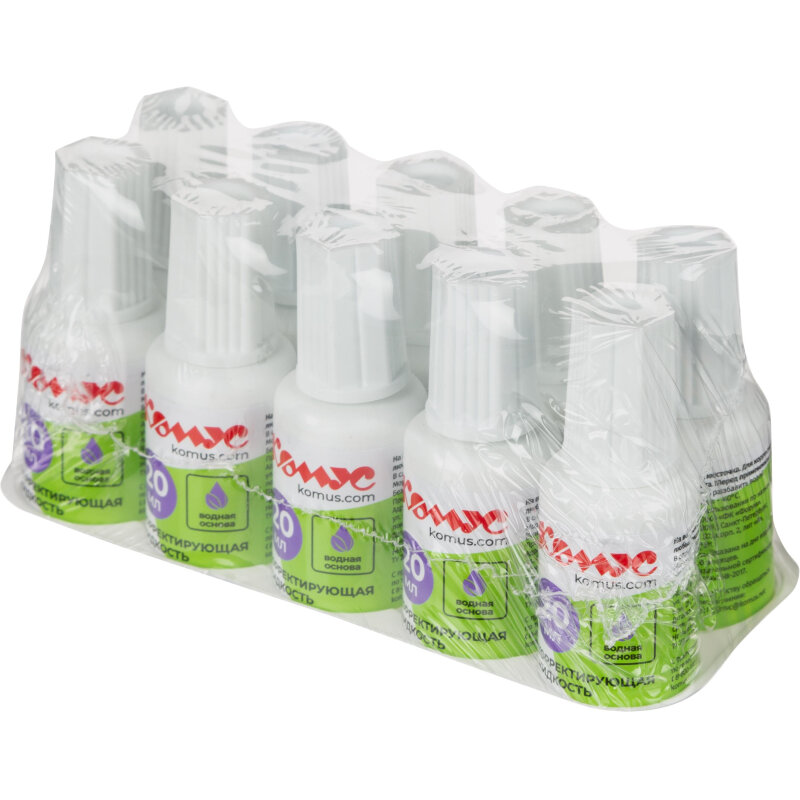 Купить Корректирующая жидкость Комус 20мл на водной основе, кисточка, 4 штуки