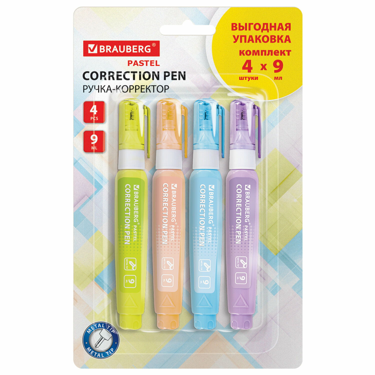 Ручка-корректор 9 мл выгодная упаковка, комплект 4 штуки, BRAUBERG PASTEL, 271922 интересное:
