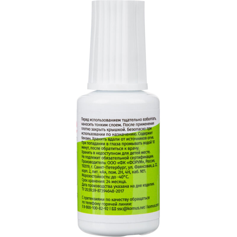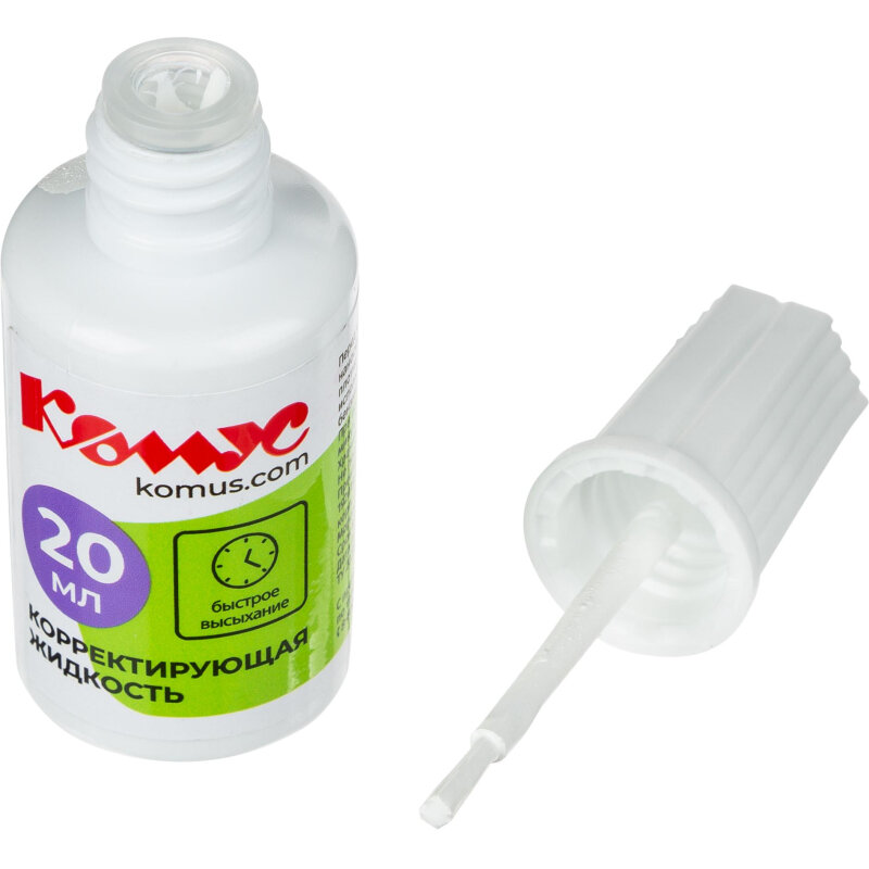 Купить Корректирующая жидкость Комус 20мл на быстросохнущей основе, кисточка, 4 штуки