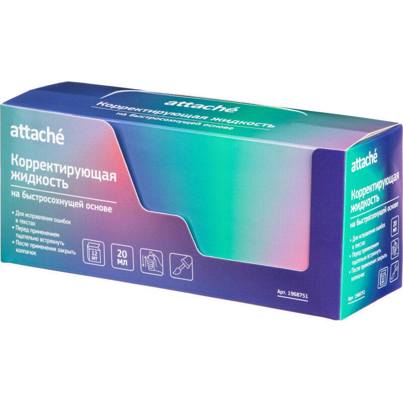 Купить Корректирующая жидкость 20мл Attache Градиент, быстросохнущая с кисточкой, 4 штуки