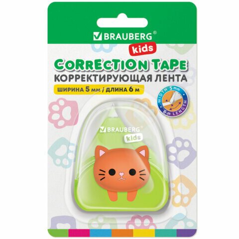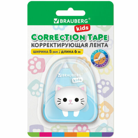 Корректирующая лента BRAUBERG KIDS Котенок, 5 мм х 6 м, корпус ассорти, блистер, 272494, 2 штуки интересное: