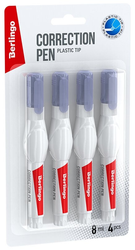 Купить Ручка-корректор канцелярская Berlingo корректирующий карандаш замазка с пластиковым наконечником, жидкий штрих, набор 4 шт по 8 мл