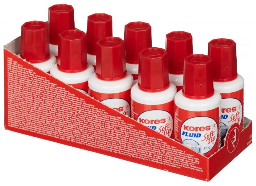 Купить Комплект 12 штук, Корректирующая жидкость KORES Soft Tip FLUID 25мл на быстросохн осн, апплик