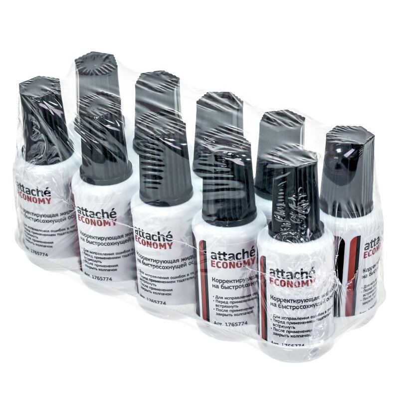Корректирующая жидкость 25г Attache Economy быстросохнущая основа, кисточка, 4 штуки интересное: