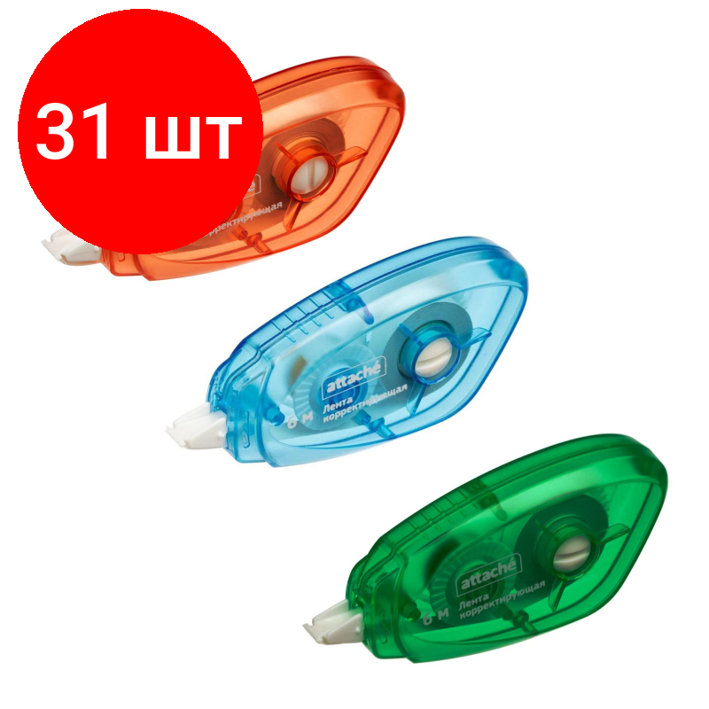 Купить Комплект 31 штук, Корректирующая лента Attache 5ммx6м с подкручивающимся механизмом, цвет асс