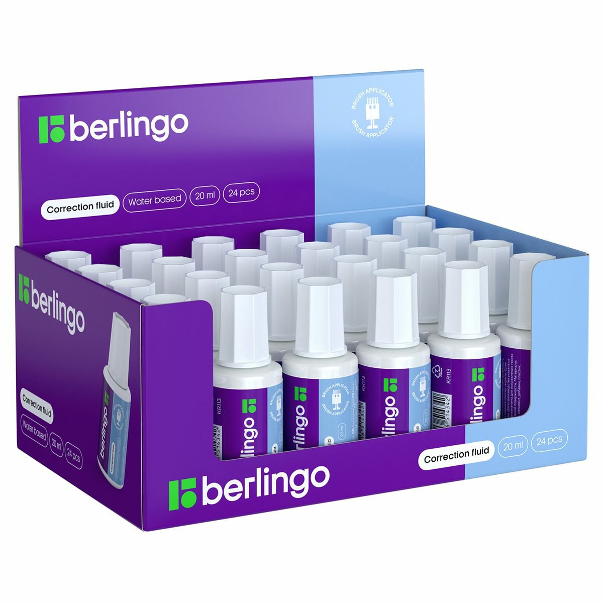 Купить Корректирующая жидкость Berlingo, 20мл, водная основа, с кистью (KR113), 24шт.