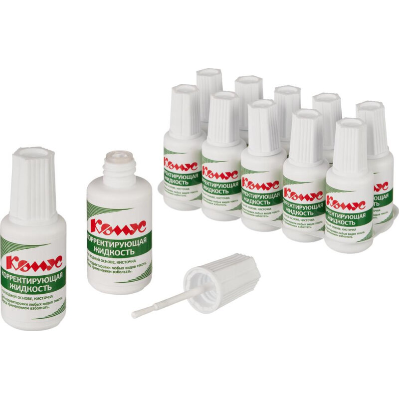 Купить Комплект 100 штук, Корректирующая жидкость Комус 20мл на водной основе, кисточка